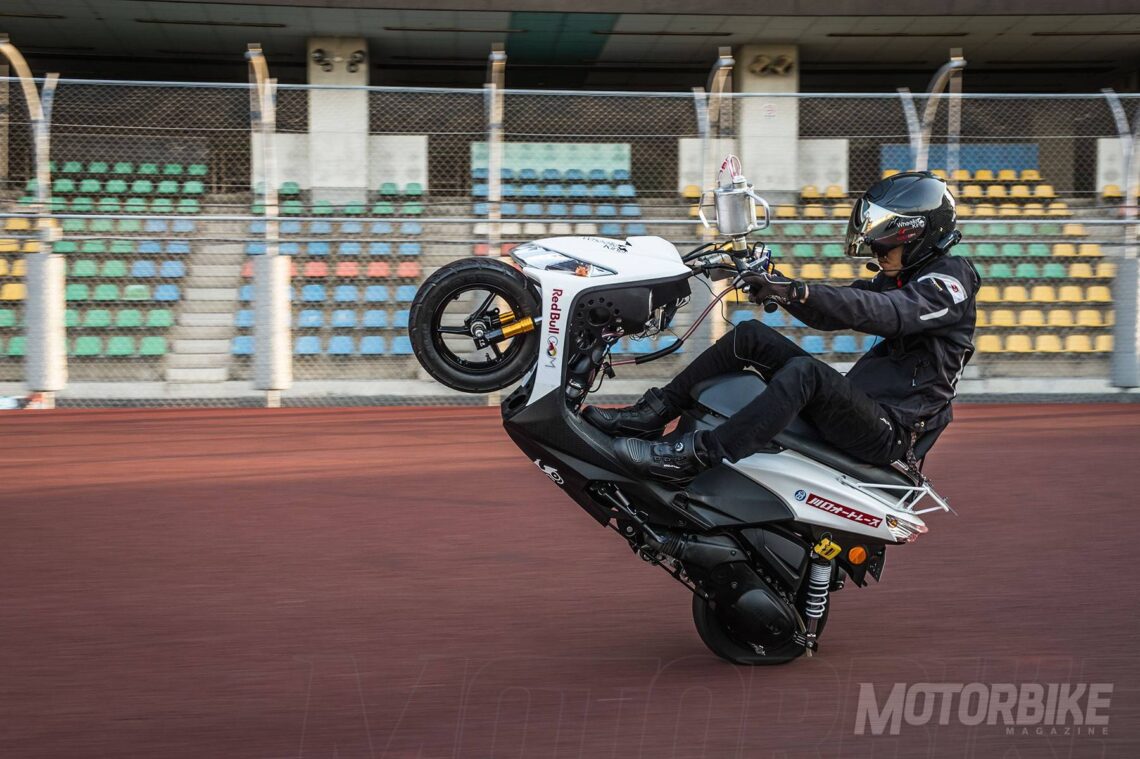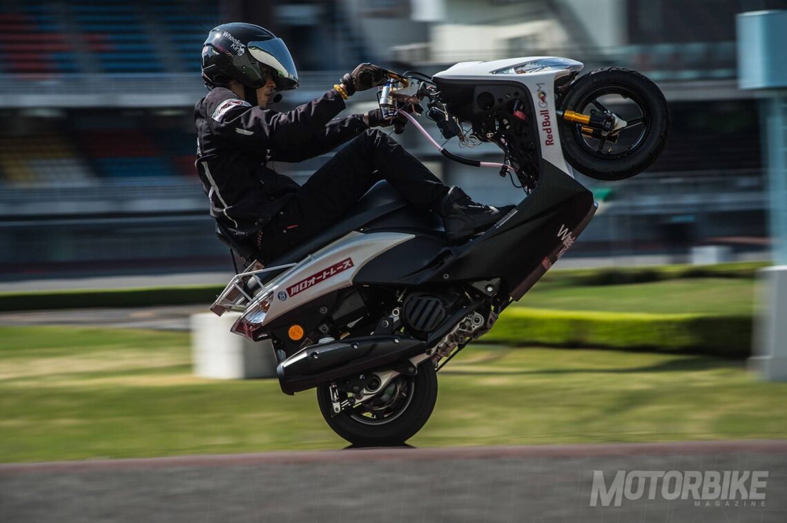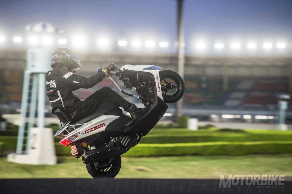 Masaru Abe es el japonés que ha conseguido hacer el 'caballito' más largo de la historia, 500 km de wheelie en un modesto Yamaha Jog y que se alargó durante 13 horas.