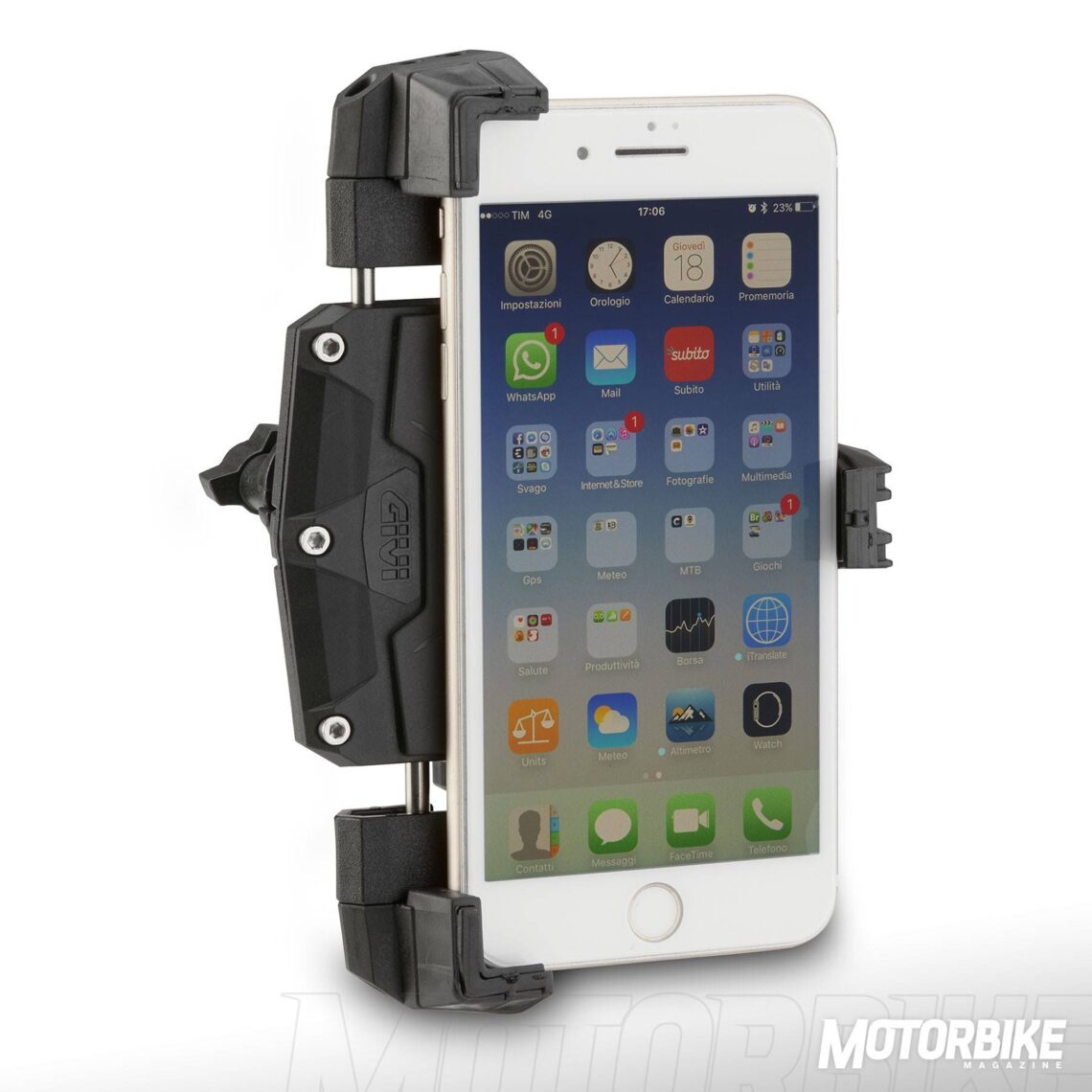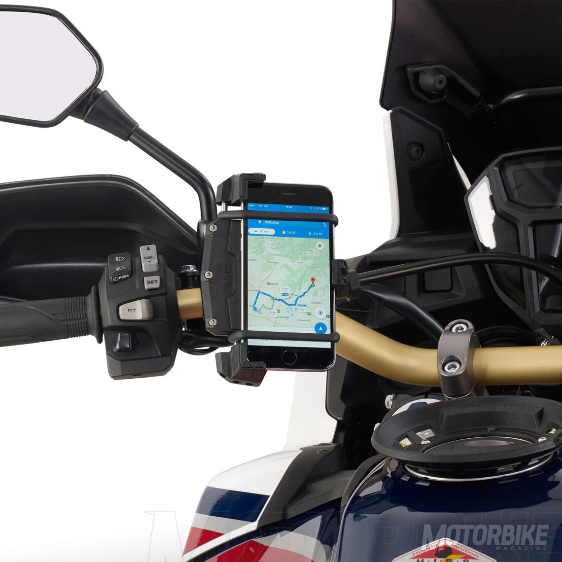 GIVI S920 M. Sabemos la importancia de estar siempre conectado, y por eso GIVI tiene en su catálogo una pinza universal para cualquier Smartphone y que se puede fijar en cualquier moto, scooter o bici, para así aprovechar todas las aplicaciones disponibles como las de navegación y poder llegar sin problemas a cualquier destino. Su precio recomendado es de 69 €.