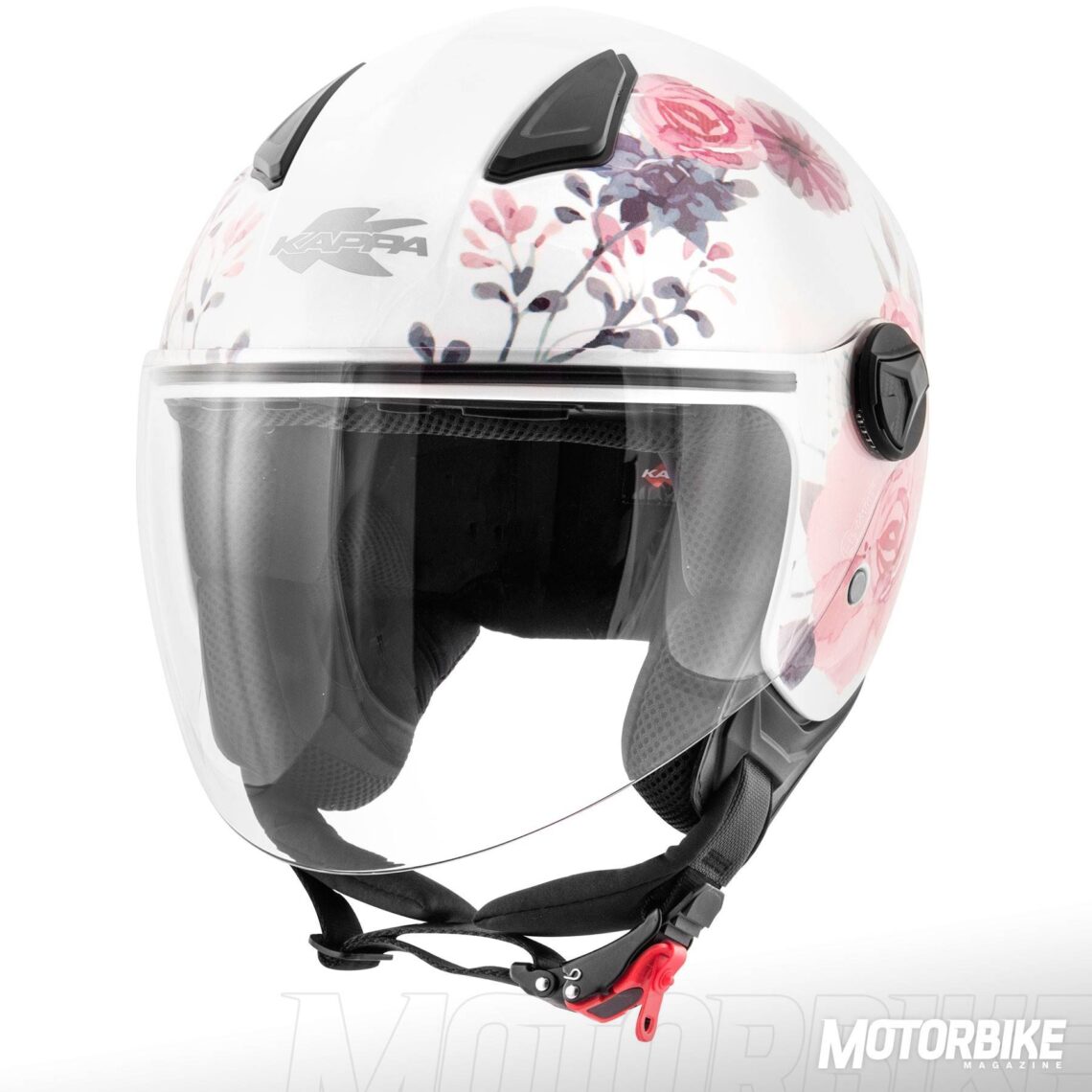 Kappa Miami Elise. Un casco jet fabricado en termoplástico que tiene un interior completamente desmontable y lavable. Su diseño floral hace que no pases desapercibida en tus desplazamientos urbanos. Cuenta con visera larga, cierre micrométrico y lo encuentras en tallas que van de la XS a la M y a un precio recomendado de 72,99 €.