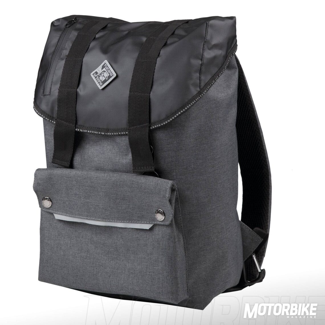 Tucano Urbano Beack Pack. Para llevar todo lo necesario de manera cómoda en tu moto, esta mochila es una muy buena opción, ya que esta fabricada con poliéster hidrófugo y con una cubierta impermeable integrada. Tiene un compartimento para llevar el portátil y otro externo para tablet, además de una rejilla portaobjetos o un mosquetón para colgar el casco. El precio recomendado es de 79,90 €.