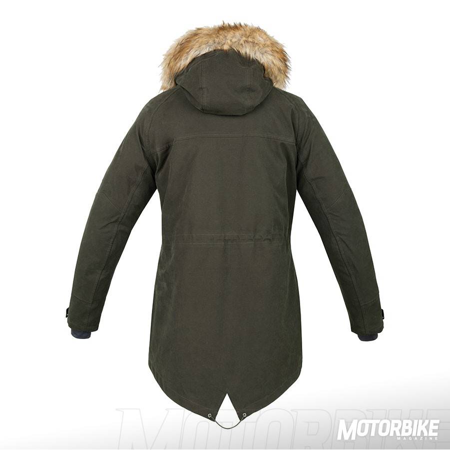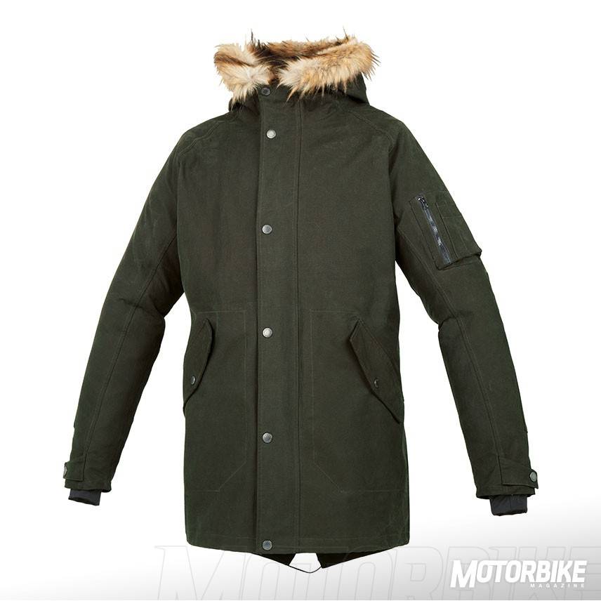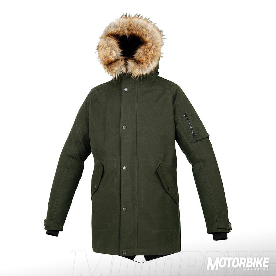 Tucano Urbano Green Park. Una parka de tipo 3/4 que se ha confeccionado en algodón técnico laminado transpirable, antiviento e impermeable, gracias a su tratamiento hidrófugo. Cuenta con un acolchado de forro térmico separable y protecciones de nivel 1 en hombros y codos. La capucha es ergonómica con sistema anti-fameo y con un ribete en ecopiel desmontable. Su diseño es perfecto para usarla en cualquier desplazamiento urbano a diario. La tienes en tallas de la S a la 3XL y con un precio recomendado de 329 €.