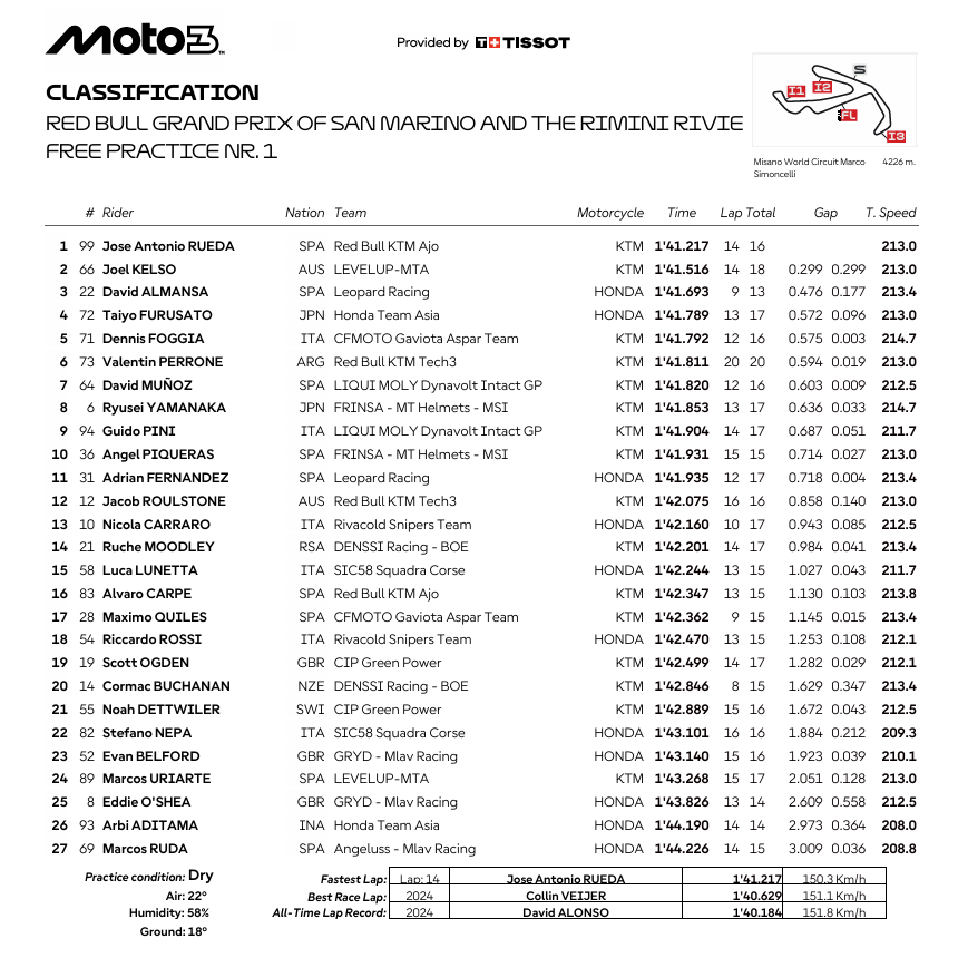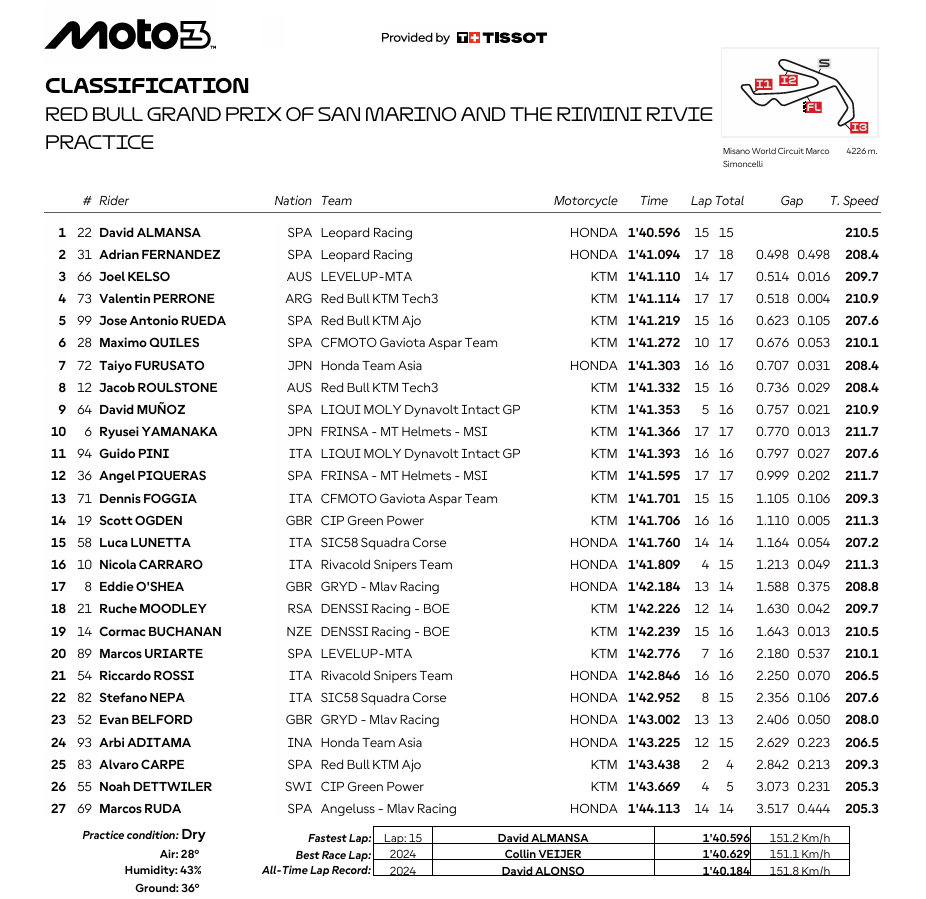 🔝 @DavidAlmansa22 takes Friday top honours in #Moto3 #SanMarinoGP 🇸🇲 pic.twitter.com/cwCNMQlLBz