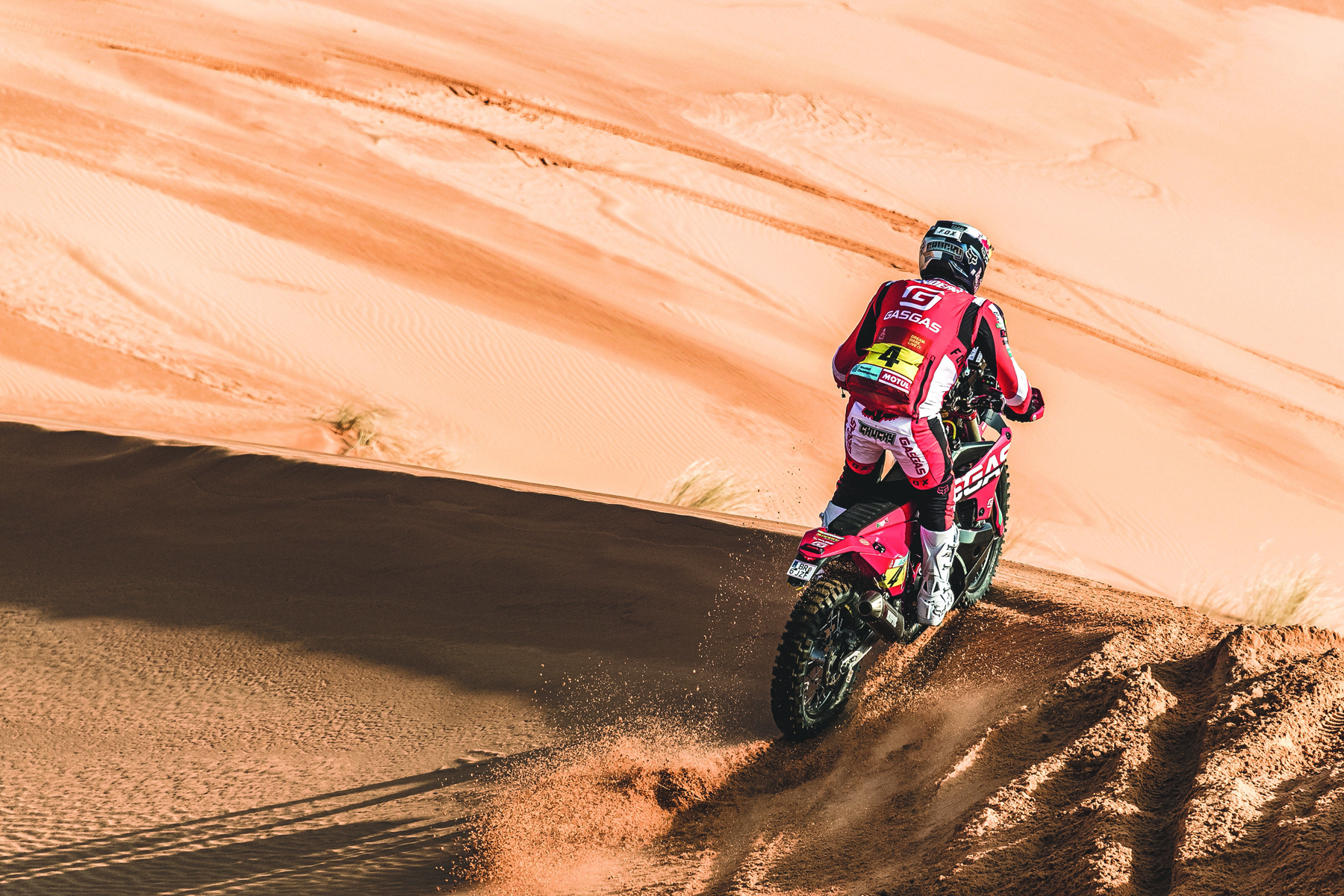Etapa 1A (prólogo) | Bien jugado por Sanders: El Dakar 2022 arrancó con un prólogo de sólo 19 km, pero pese a la poca distancia del mismo, la organización decidió imponer dos matices importantes para evitar que los pilotos especulasen de cara a la salida de la primera etapa larga: un factor de corrección que multiplicaba por cinco los tiempos en meta y la posibilidad de que los 15 primeros clasificados eligiesen su orden de salida para el segundo día. Daniel Sanders mostró su candidatura desde el inicio ganando el prólogo y, por ende, teniendo la opción de elegir salir el 15º al día siguiente, algo que también aprovecharía. Era también la primera victoria de GasGas en el Dakar.