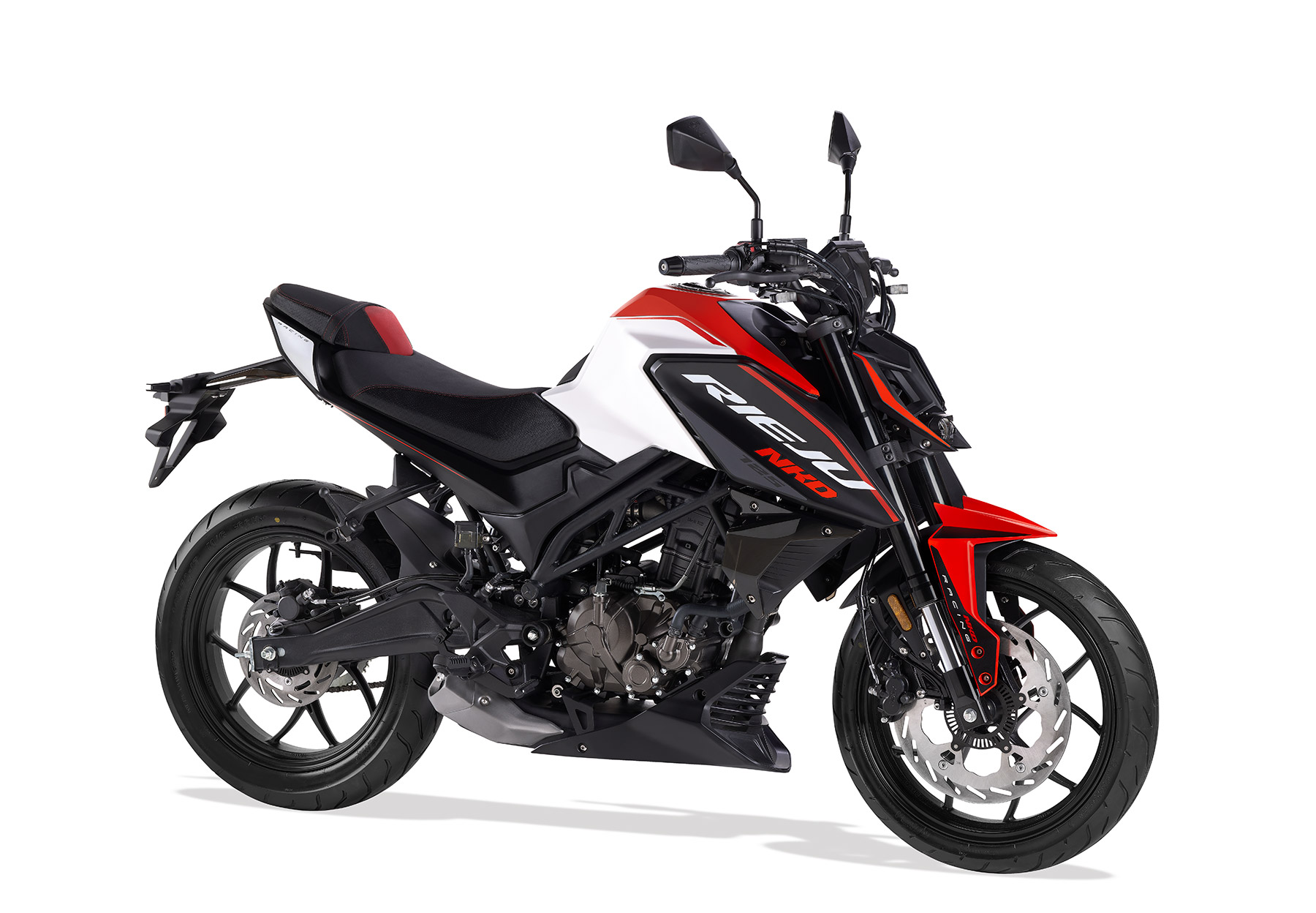 La NKD 125R es el modelo naked deportivo disponible para usuarios con carnet de coche. Su agresivo diseño va acompañado de un chasis multitubular de acero y un motor monocilíndrico de última generación con 15 CV (el mismo de la Aventura 125). Pantalla TFT de 5" con tecnología Mirror Link, horquilla invertida de 41mm, sistema de frenos Nissin, sistema ABS y TCS, depósito de 13.5 l. y 150 kg en seco marcan la diferencia.