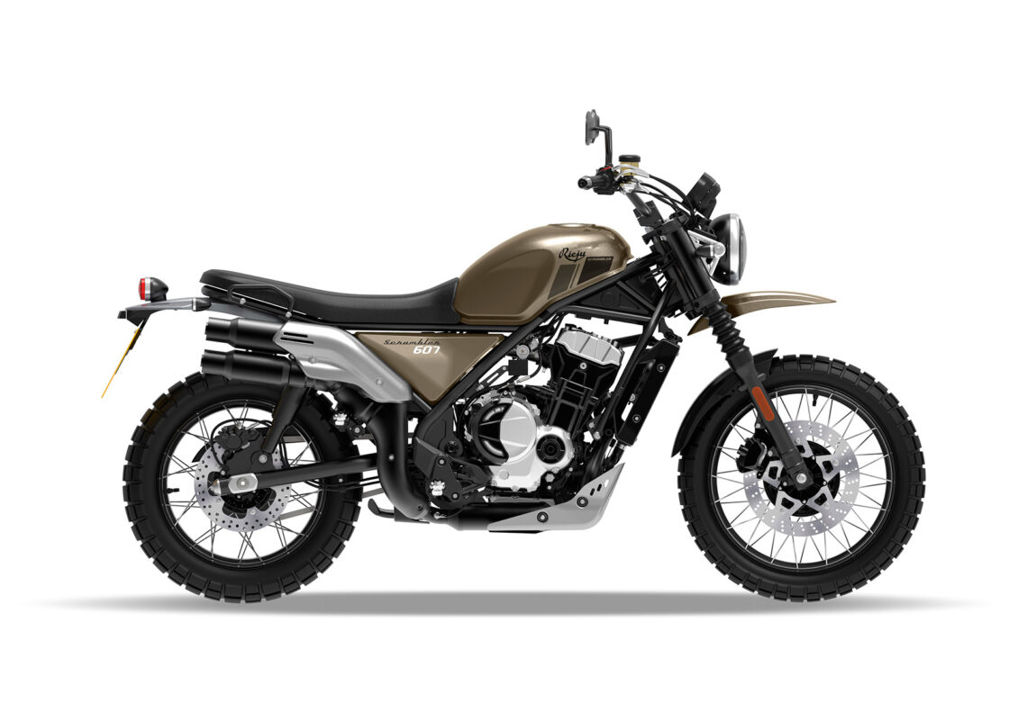 Aprovechando el motor de la Aventura 607, Rieju ofrece también una montura scrambler de media cilindrada para aquellos urbanitas con estilo. Mecánica bicilíndrica de 580cc con 64 CV, llantas de radios con neumáticos mixtos, frenos Nissin, ABS, TCS, cubrecárter de aluminio y doble amortiguador trasero son algunas características.