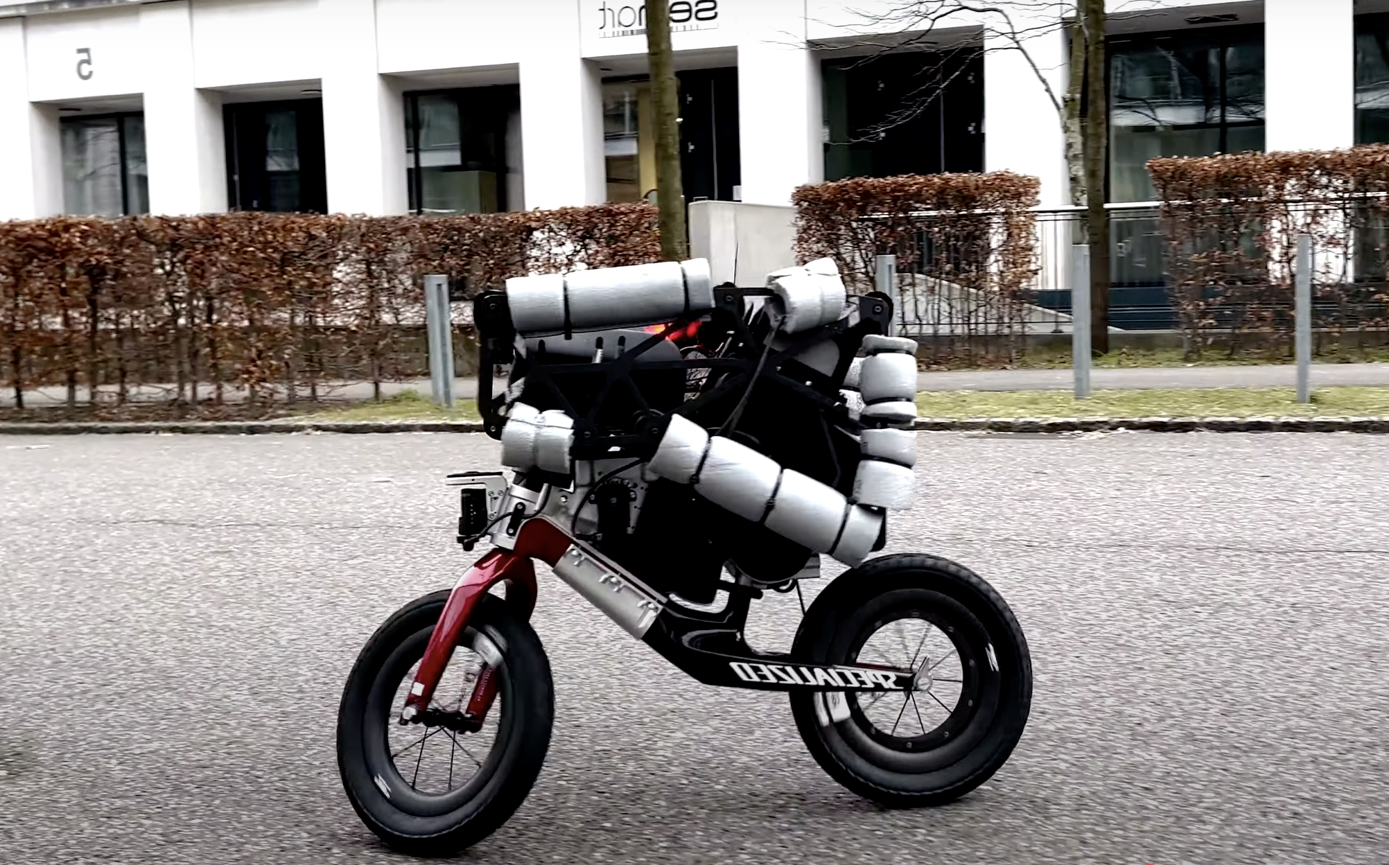 El UMV no solo está autoequilibrado, sino que además tiene capacidad para moverse allá donde quiere y de dar saltos de una altura considerable para superar obstáculos. Es decir, con un poco de aprendizaje, fácilmente podríamos verlo disputar alguna que otra zona de trial indoor. Y si aprende rápido, seguro que no le faltaría descaro para plantarle cara al mismísimo Toni Bou.