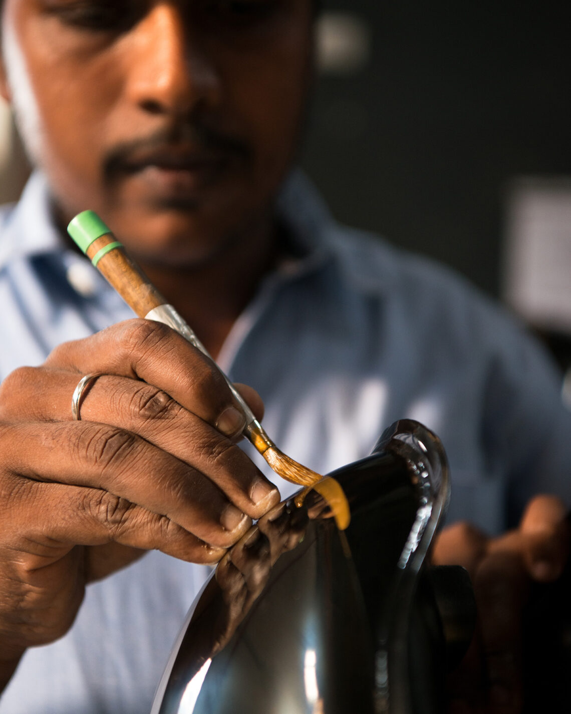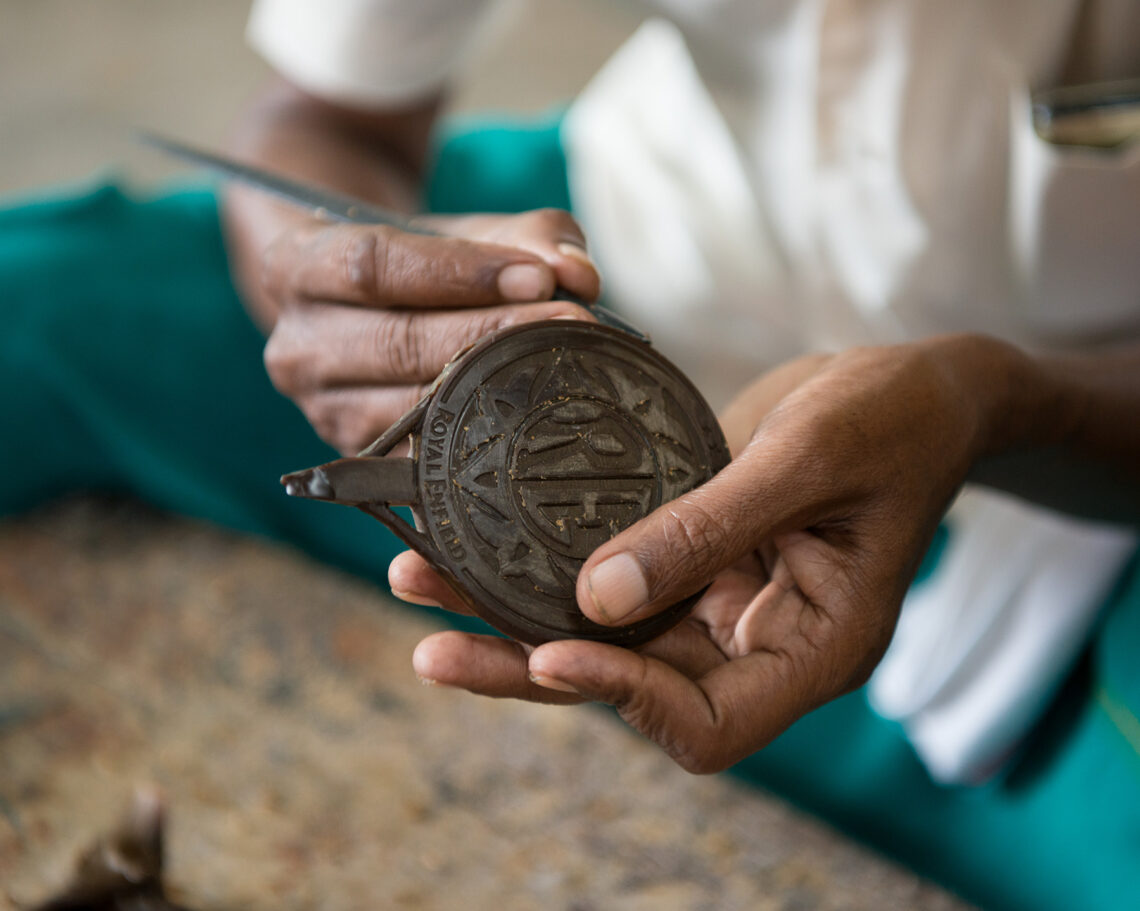 Para que aún sean más especiales, y en honor al ADN artesanal de la marca, el depósito de estas 120 Aniversario lucirá un distintivo muy especial de latón de fundición, elaborado de manera artesanal. Estos elementos se han elaborado en colaboración con la familia de artesanos ‘Sirpi Senthil’ de varias generaciones, oriunda de la localidad santuario de Kumbakonam, Tamil Nadu (India), y expertos en la construcción de elegantes imágenes de latón para los templos más venerados de la India a lo largo de los últimos siglos.