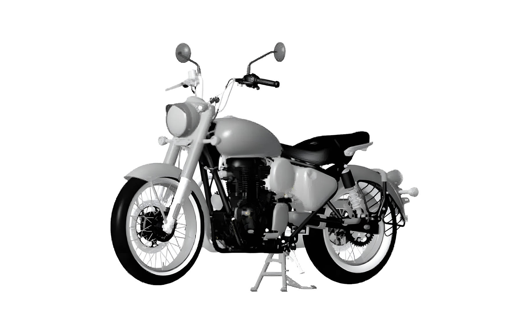 Esta imagen en CAD aún sin renderizar, propia de los últimos pasos de desarrollo y en miras a registrar, delata esta posibilidad de encontrarnos una nueva Royal Enfield Bobber 350 en el mercado 2025. Lo que se aprecia a primer golpe de vista son ligeros cambios que logran ese estilo bobber sobre la base de la Classic 350.