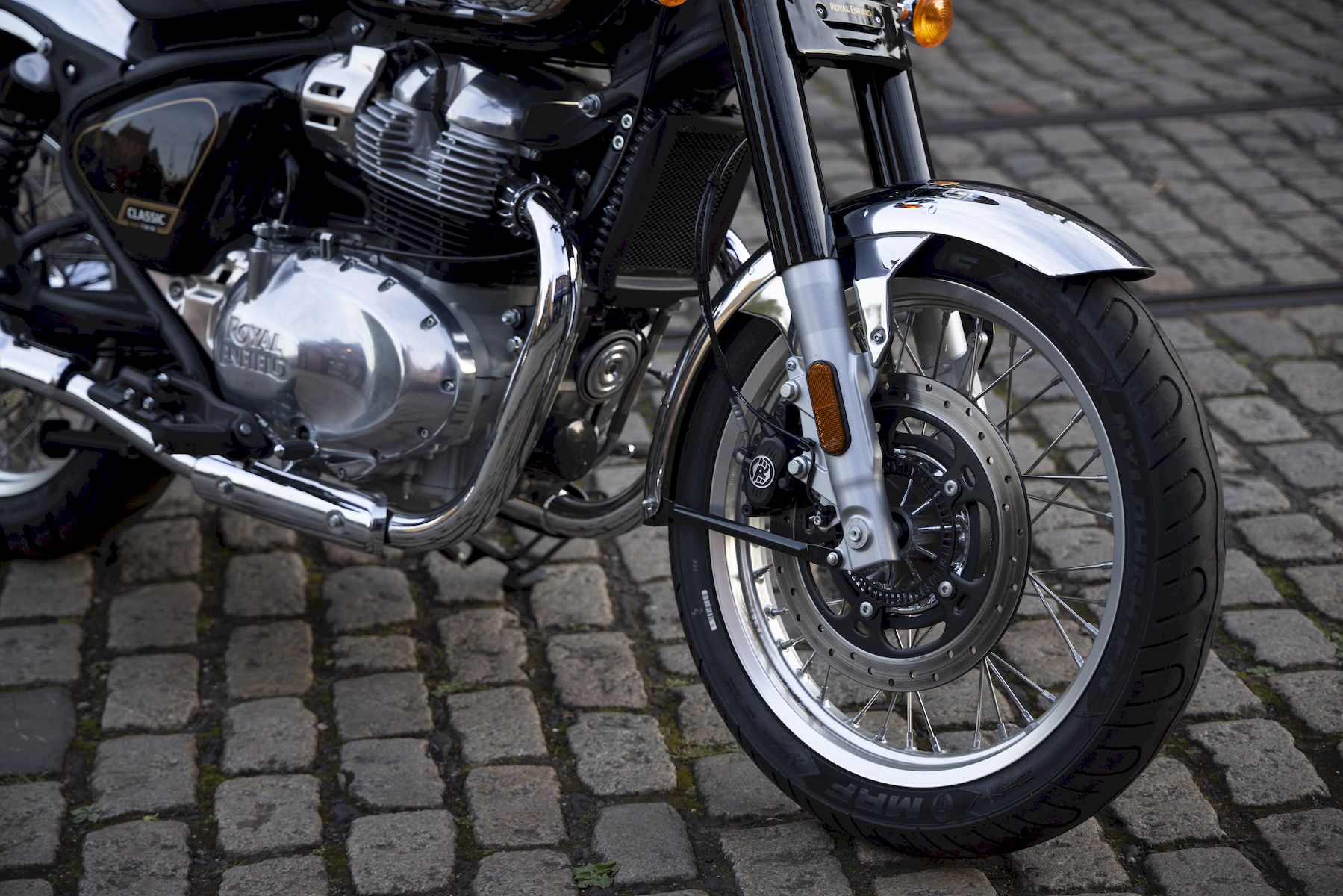 La suspensión hace su trabajo correctamente, el tacto general es de "moto clásica mejorada" y sólo para frenar deberás ayudarte con el disco trasero para decelerar fuerte, ya que dejar toda la responsabilidad al tren delantero es excesivo. Los neumáticos indios MRF (adiós CEAT y CST) sorprenden, pues en ningún momento echas de menos algo más conocido.
