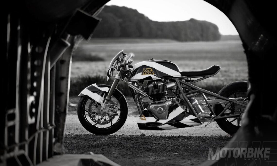 La futura Royal Enfield Continental GT 650, con el nuevo motor bicilíndrico, sirve de base para crear una espectacular máquina dragster denominada Lock Stock.