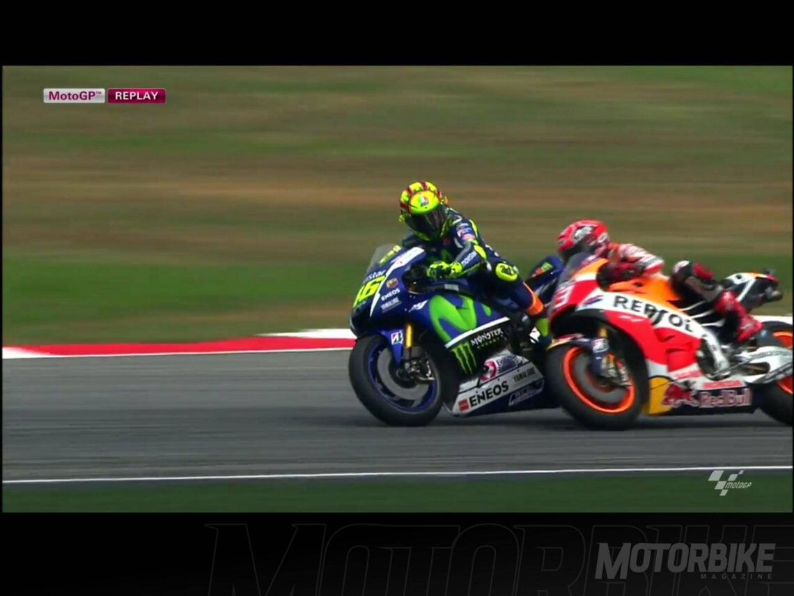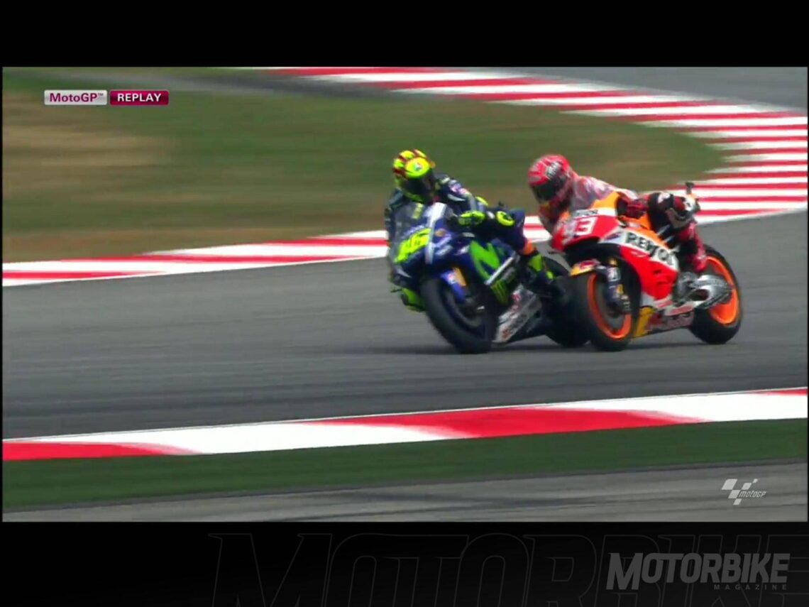 Dirección de Carrera se ha reunido con Valentino Rossi y Marc Márquez tras el GP de Malasia para analizar la situación tras el incidente sufrido. Dirección de Carrera ha tomado la decisión de no sancionar a Márquez y aplicar una sanción de tres puntos a Valentino Rossi lo que, sumado al punto que ya tenía desde el GP de San Marino, le harían salir desde la última posición del GP de Valencia.
