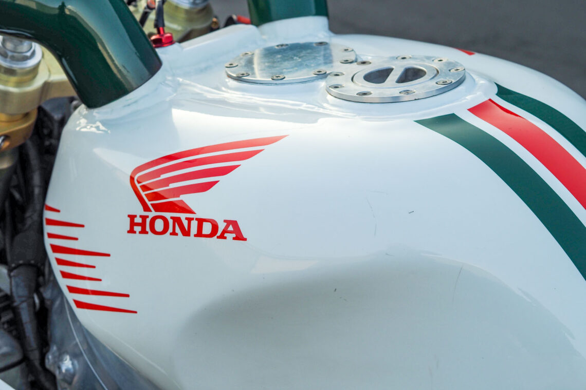 Hay que señalar que esta RVF750 está adaptada para circuito, por lo que no cuenta con iluminación ni delantera ni trasera, así como placa de matrícula.