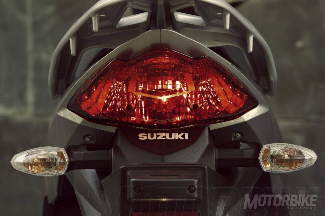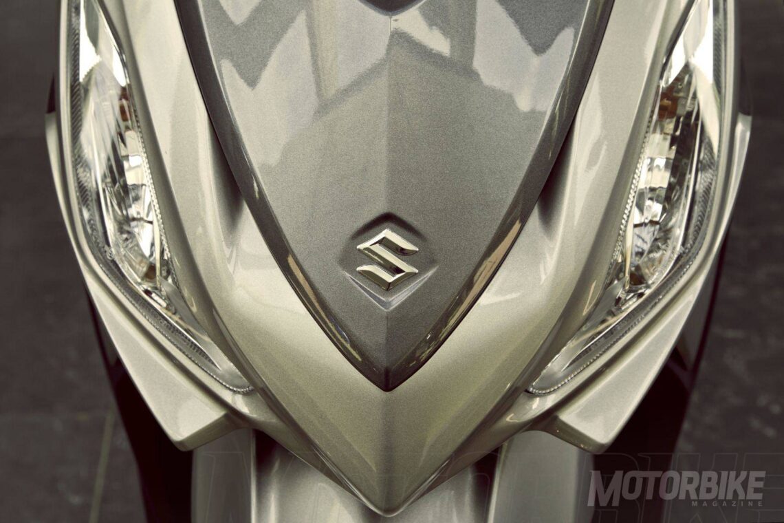 Nada parece estar fuera de lugar, es una montura muy lógica y práctica. Destacaría sin duda el sencillo y eficiente freno de mano, incorporado en la maneta izquierda, unas guanteras bastante útiles y un generoso espacio bajo el asiento. Su diseño de líneas deportivas es bastante atractivo y Suzuki incluso tiene previsto lanzar un modelo edición limitada con la decoración de MotoGP. Es imposible ponerle pegas a nivel de prestaciones si piensas en su gran relación calidad-precio, pero por otra parte, siendo una moto tan urbana me hubiera gustado ver alguna decoración más contemporánea y atrevida, quizá acabados mate u otra gama de color que salga de los habituales.