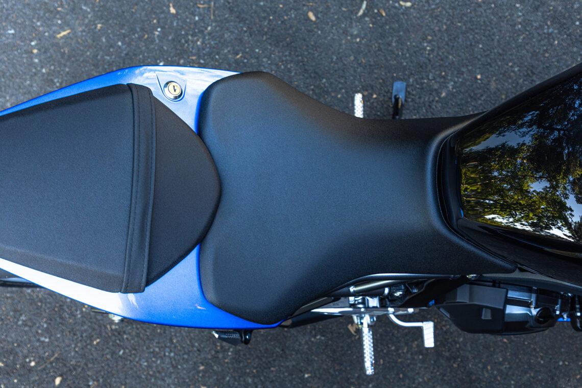 Si te subieses a la Suzuki GSX-8R con los ojos vendados nunca dirías que estás ante una moto deportiva. Asiento a 81 cm del suelo, arco de pierna estrecho, estriberas bajas y semimanillar alto: comodidad y accesibilidad para todo el mundo.