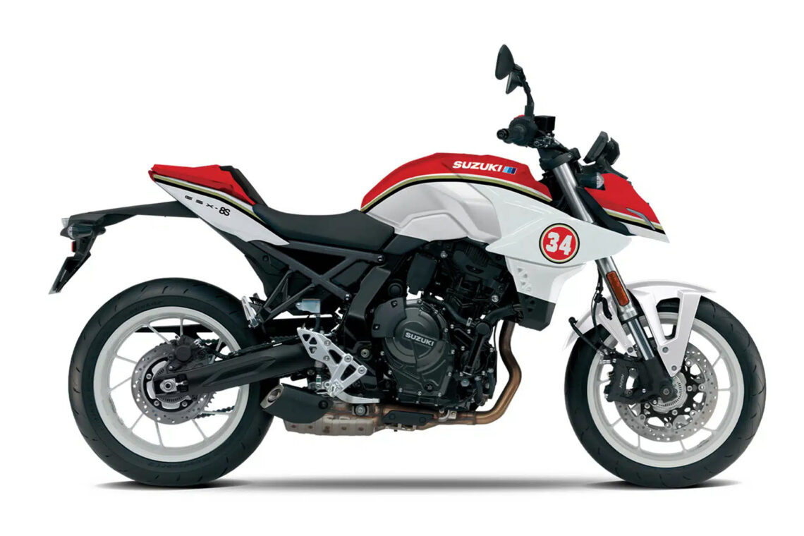 Esta Suzuki GSX-8S Kevin Schwantz no presenta diferencias mecánicas o dinámicas, sino más bien estéticas, junto con una tapa del asiento trasero para hacerla monoplaza, el número #34 en el lateral de la moto, y las gráficas de carreras mencionadas.