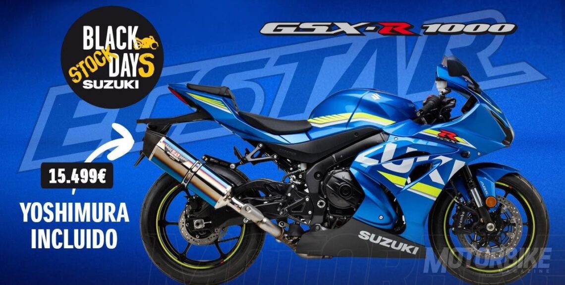 Suzuki se suma al Black Fridays y ofrece la Suzuki GSX-R1000 con escape Yoshimura de regalo por 15.499 € en sus Black Stock Days, hasta el 31 de diciembre.