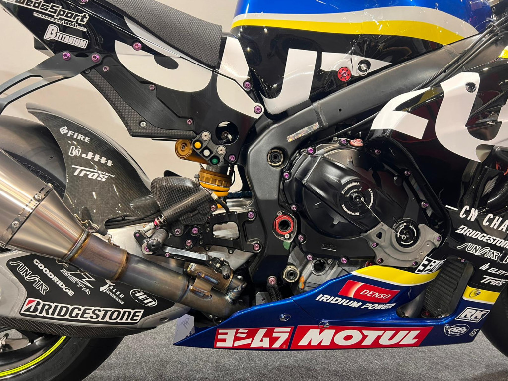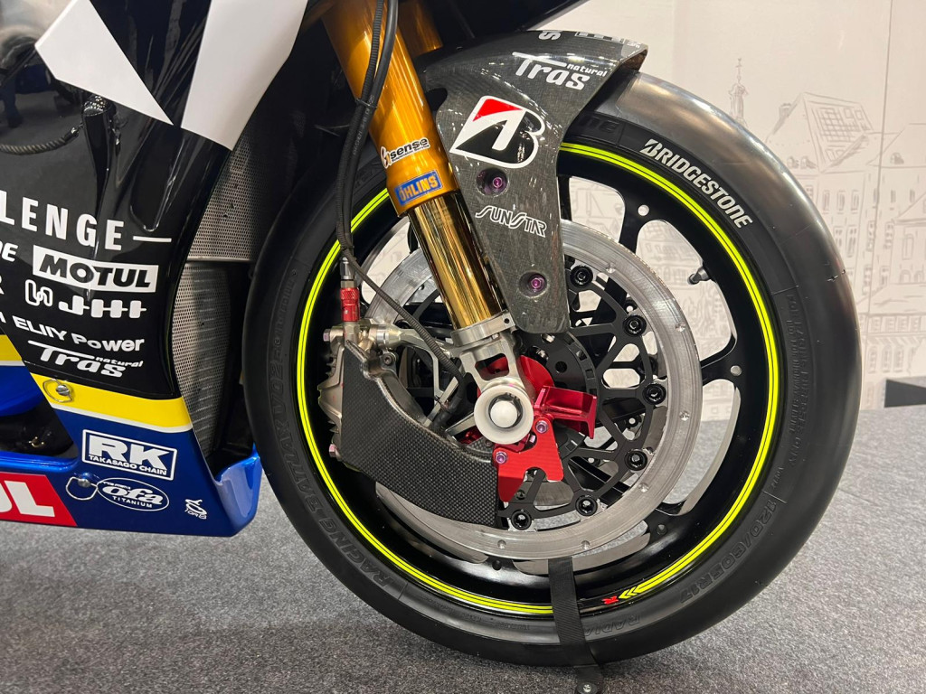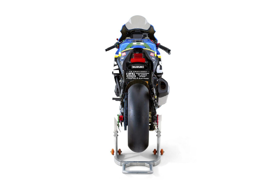 Pero esta Suzuki GSX-R1000 incluye más material renovable. Sus neumáticos Bridgestone han sido fabricados con material reciclado y son reciclables. Su aceite MOTUL también tiene una base de origen biológico y sus carenados son de fibra de carbono reciclables. Aunque no sea precisamente renovable, destaca a simple vista por su escape Yoshimura, además de sus colores que tanto identifican a la firma de Hamamatsu.