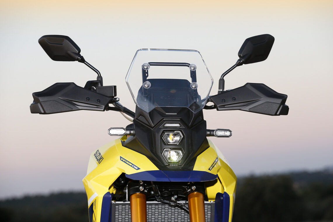 El diseño de esta nueva Suzuki V-Strom 800DE como podemos ver sigue fiel a la personalidad neo-retro futurista, similar a su última V-Strom 1050 y, en cierto modo, siendo un guiño para sus legendarias DR Big y DR-Z de antaño.