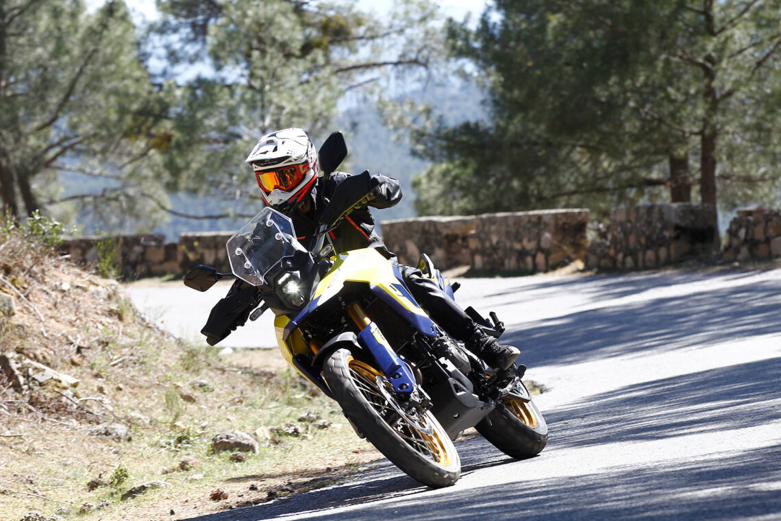 La Suzuki V-Strom 800DE aguarda para que nos subamos y empecemos a dar gas. El primer tramo de la ruta era de carretera, con un poquito de vía de alta velocidad, nacional de curva rápida y amplia, y secundaria revirada con frenadas y horquillas. Hubo de todo la verdad.