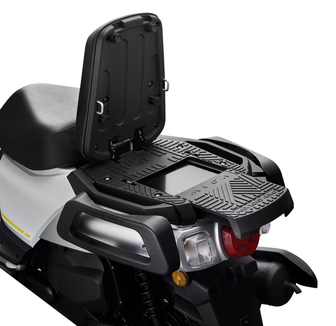 El 4MICA es sin duda un scooter diferente y que llama poderosamente la atención. SYM lo define como un scooter multifuncional y lo ha presentado en dos cilindradas: 125 y 150. Su nombre da juego, 4MICA, leído “Formica” significa “hormiga” en italiano, y su diseño no pasa desapercibido. Quiere ser un scooter para todo, como si fuera un SUV de dos ruedas, y para ello se sirve de una zona trasera modular que permite configurar el 4MICA en modo pasajero o en modo transporte. Su motor 125 ofrece 9,6 CV y el 150 11,4 y ambas versiones disponen de ABS. Su equipamiento se compone de iluminación LED, instrumentación digital, suelo plano de gran capacidad, iluminación de emergencia y toma de carga QC3.0.