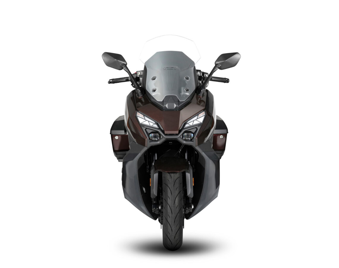 ¡Hl! Los faros no me acaban de gustar, y tampoco creo que favorezcan mucho la aerodinámica, en general la estética no me enamora, creo han querido ser diferentes_y quizá lo hayan sido_ pero no necesariamente para bien. El frontal se puede hacer (y el escúter en conjunto) más atractivo_ la practicidad general se verá en las presentaciones/pruebas. También en el que lleva maletas integradas (buena idea y ya era hora), pero no parecen con la mejor capacidad, y las cúpulas de las dos escúter (esta y la 400) no parecen muy protectoras_¿¡porque_siendo GT’S!? Saludos, igual cuando vea pruebas, me gusten más o cambian algunas cosas al presentarlas en España. Bien por detalles de equipamiento (control crucero..). Creo debería ser obligatorio en escúter/motos al menos de 300/350 400 en adelante. No obstante el de maletas me ha suscitado interés y esperaré pruebas y más datos, que a veces en salones no se dan todos o que sean correctos. El TL508 subió mucho de precio y está desfasada la pantalla y equipamiento. Lo probé y el apoyo lumbar del asiento provoca incomodidad- es muy duro, no recuerdo si se podía regular-en vez de lo contrario (tengo una SD 350), muy cómoda en eso y en general.