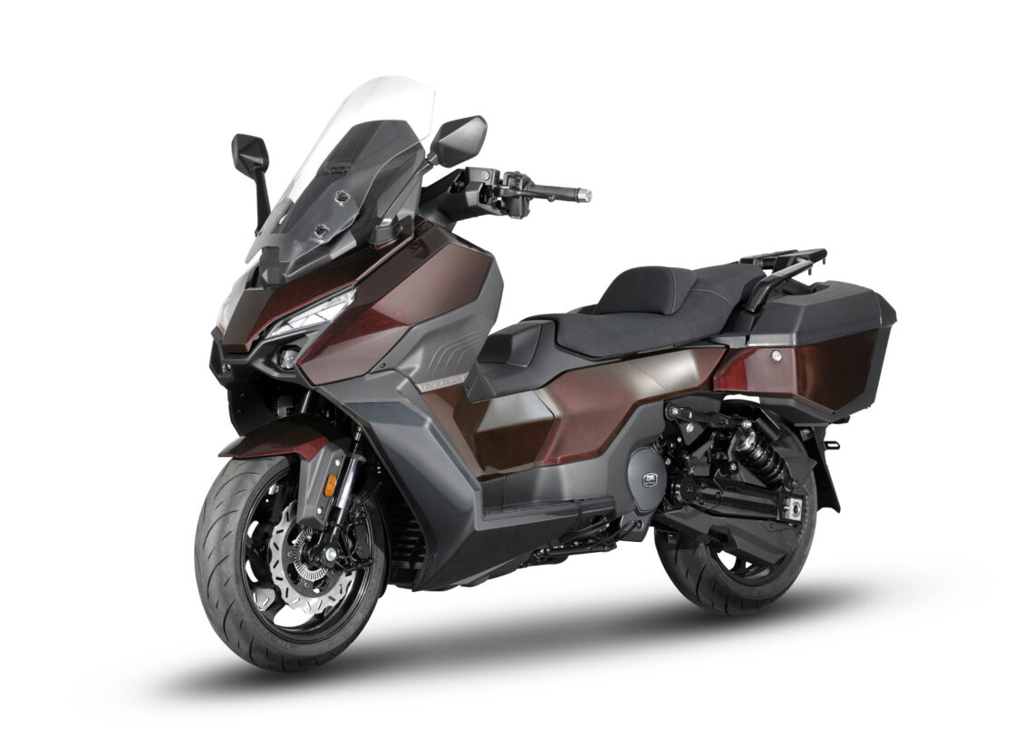 Destaca por sus maletas laterales. Con este nuevo modelo, SYM abre una nueva generación de maxiscooter estilo sport-turismo. El TTLBT es un scooter de media cilindrada (508 cc) con todo el confort de un Gran Turismo: pantalla ajustable eléctricamente, control de crucero, puños calefactables y 28 litros de capacidad extra gracias a las maletas laterales integradas en la carrocerías, además de los 37 litros ya disponibles bajo el asiento.