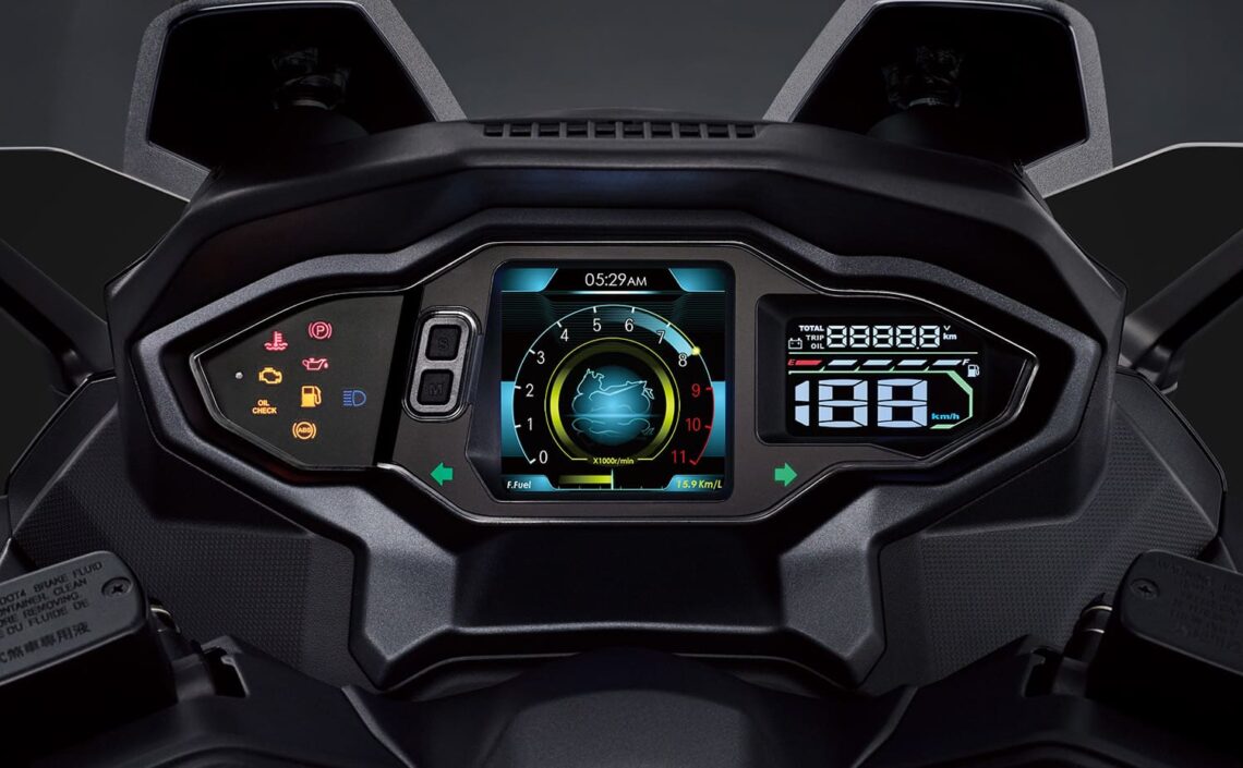 Las líneas deportivas del SYM Maxsym TL (de Twin Line) son muy atractivas y casan con su funcionalidad, ya que dispone de luces de posición LED, parabrisas de doble posición (con herramienta), hueco para un casco integral, freno de parking 2 en 1 o dos jet, dos guanteras, puerto USB, neumáticos Maxxis específicos y una espectacular pantalla TFT de 4,5".
