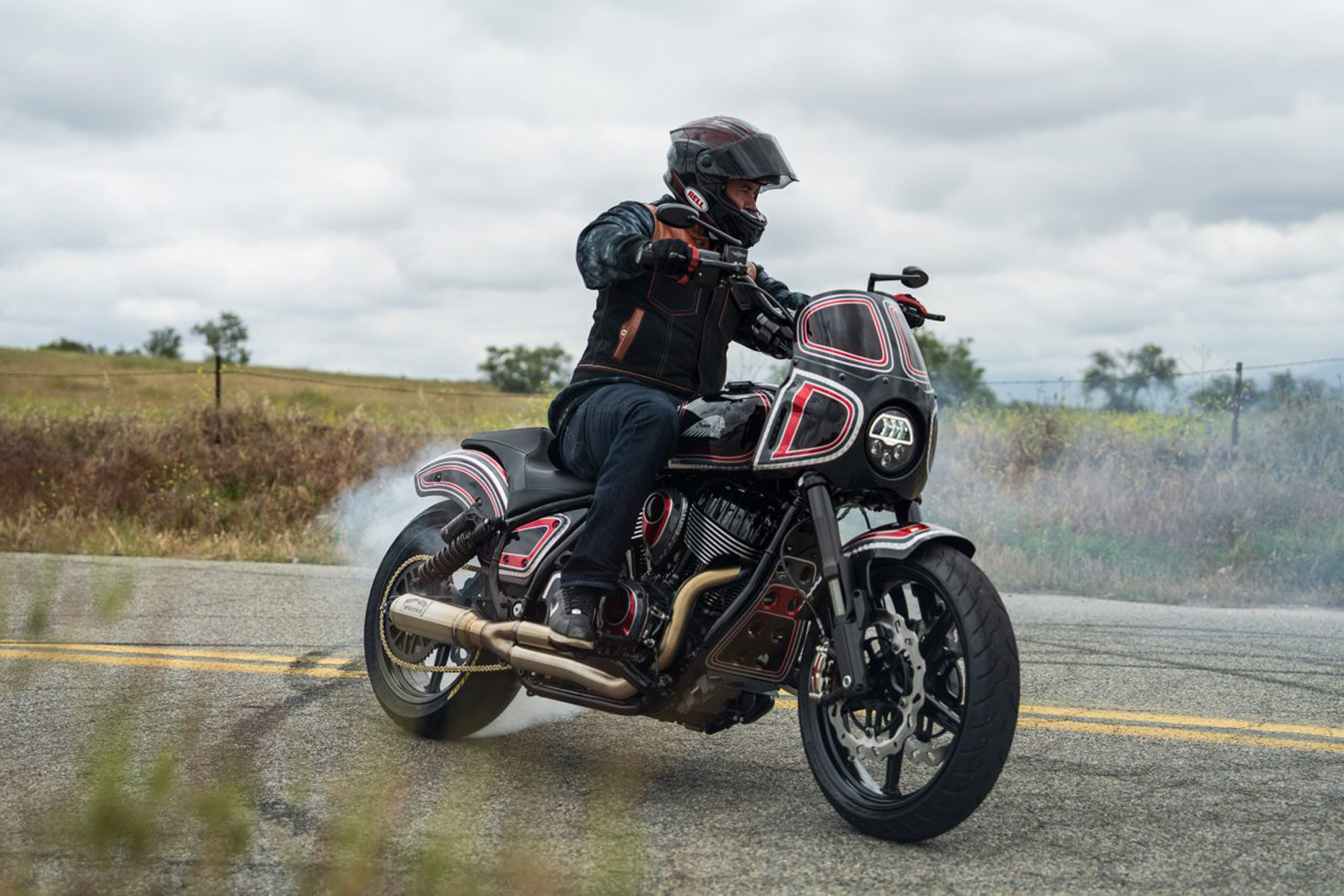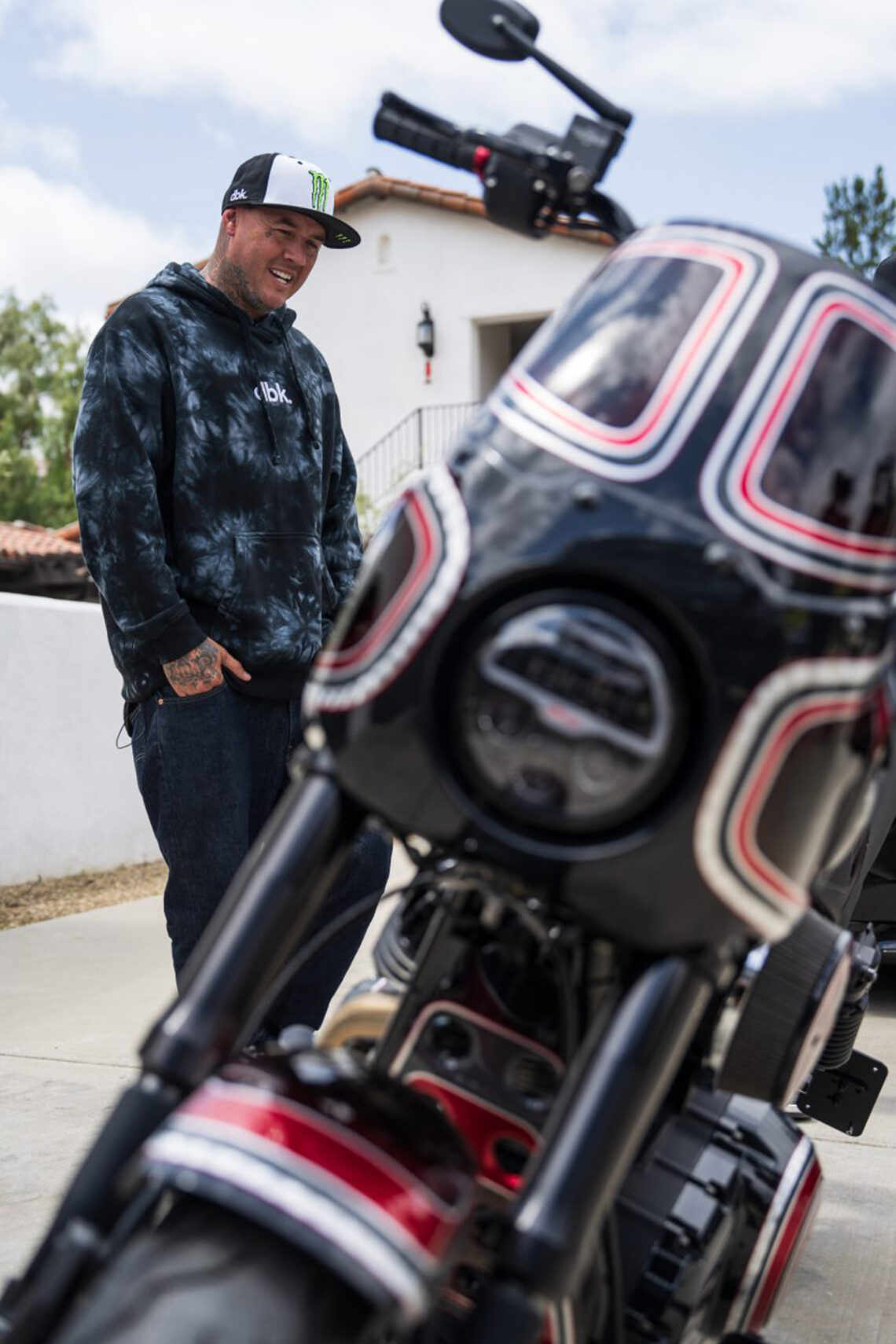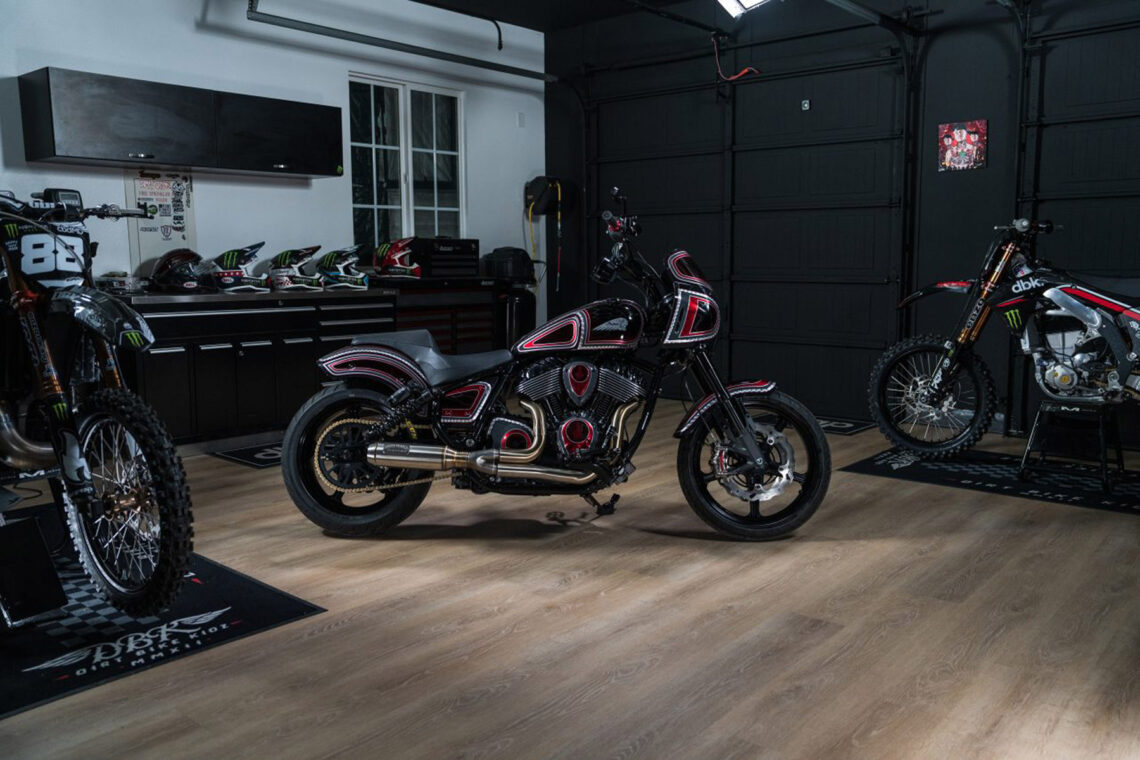 Hart también ha elevado la parte delantera unos 2.5 cm y añadió una maneta de embrague Beringer para conseguir una sensación más parecida a la de una moto a la que Twitch está acostumbrado a pilotar. Para terminar, Hart recurrió a Schultz Design para conseguir un esquema de pintura llamativo pero clásico, y que realmente representara la personalidad de Twitch.