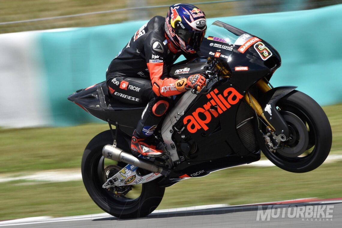 De los cinco fabricantes de la categoría reina, los de Noale siguen siendo los últimos en discordia. La RS-GP de 2016 no estará disponible hasta los test de Qatar -2 al 4 de marzo-, por lo que el trabajo principal de Bautista y Bradl se ha centrado en acumular el mayor número de datos posible para trasladar toda esta información al desarrollo de la moto de este año. La intensa lucha por ser el número uno del equipo se la ha llevado en este asalto Stefan Bradl, 18º, que ha acabado con un tiempo cinco décimas más rápido que el de Álvaro Bautista, 21º. El hecho de contar con dos Campeones del Mundo en sus filas con un nivel bastante parejo que les espolea a mejorar en cada entrenamiento sigue siendo, a día de hoy, la mejor noticia para Aprilia.