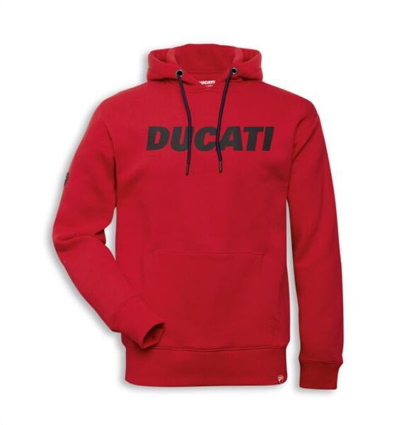 Ducati no solo trabaja minuciosamente todos los detalles de sus motos, también lo hacen con su ropa casual. La marca italiana dispone de un amplio catálogo de equipamiento, con ropa especializada para la moto y también de calle. En este último caso está la sudadera casual de la marca, icónica, bonita y fácil de combinar, con un tejido de 80% algodón y 20% poliéster.