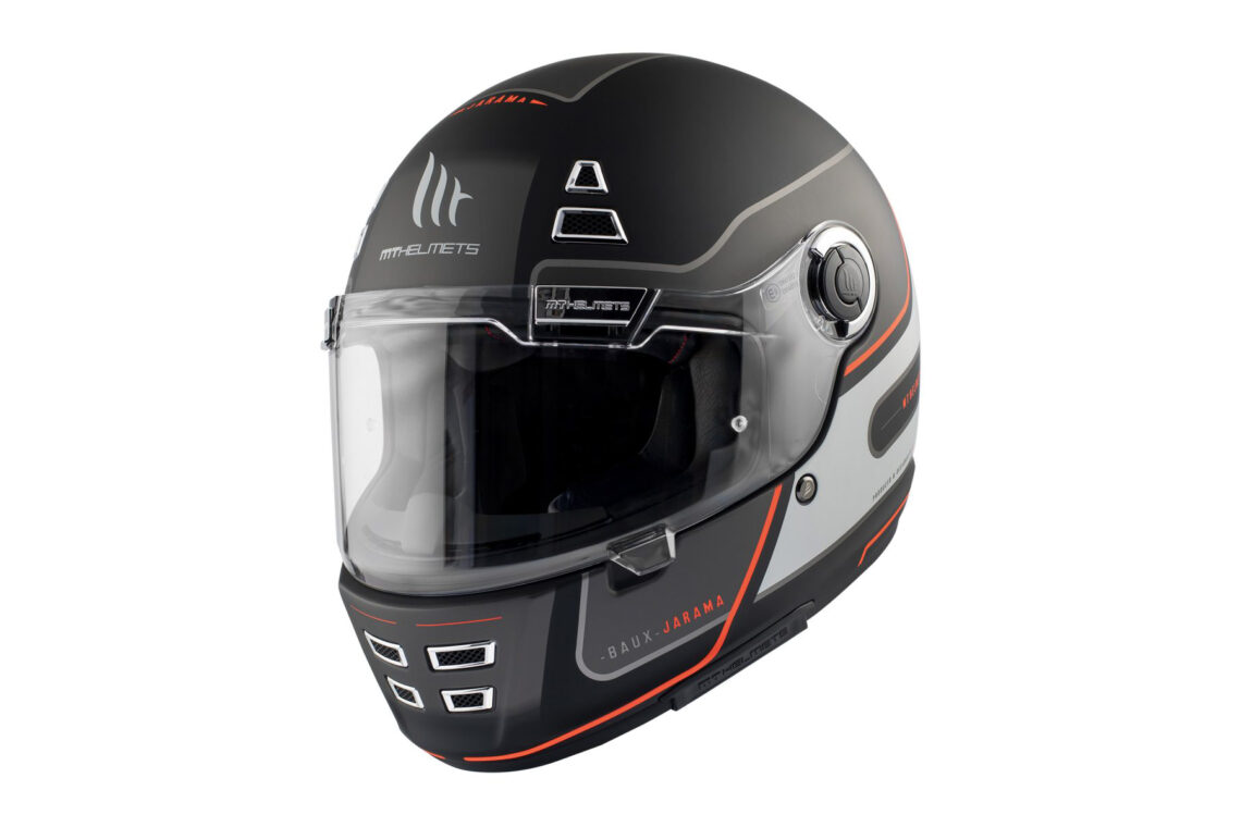 MT Helmets está de moda tras su equipo ganar el Mundial de Moto2 con Ai Ogura. Sus cascos del mercado destacan por una relación calidad-precio difícil de superar, con varios modelos reconocidos en poco tiempo. Es el caso de Jarama (aproximadamente 150 €), que ha resucitado en los dos últimos años para ser el casco retro casi por excelencia. Bueno diseño, comodidad, seguridad... y, obviamente, con un toque clásico muy conseguido, ideal para aquellos seres queridos que tengan una moto antigua o una neo-retro. Está disponible en varios colores, así como en una versión con visor solar en su interior.