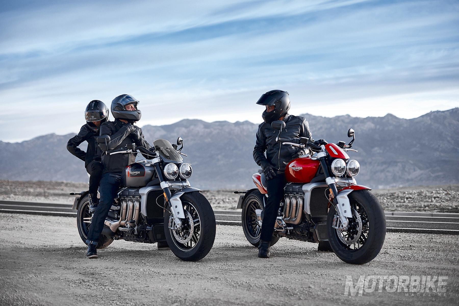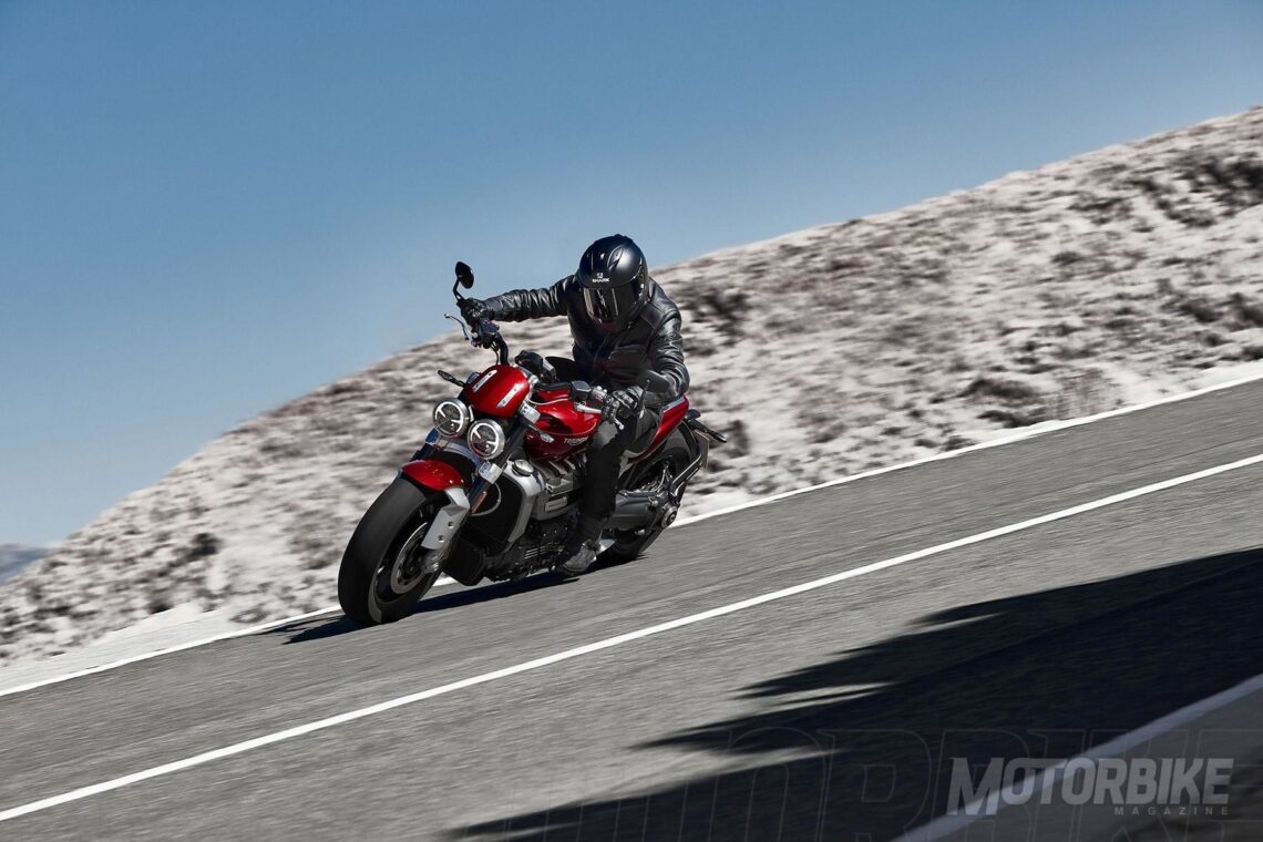 Llegan como dos muscle-roadster definitivas. Por un lado, la Triumph Rocket 3 R, disponible en rojo o negro, destaca por su increíble par motor y sus altos niveles de control, confort y prestaciones. Por otro lado, está la Triumph Rocket 3 GT, que mejora sus niveles de comodidad para afrontar rutas y viajes y que estará disponible en colores Silver Ice/Storm Grey con líneas en Korosi Red pintadas a mano o en el elegante Phantom Black.