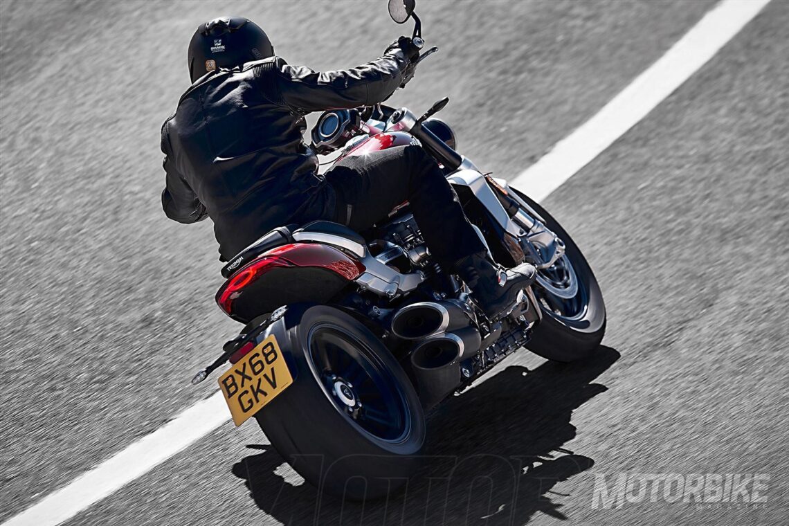 Obviamente, ambas muscle-bikes han sido desarrolladas basándose en la moto original, pero ahora gana en presencia y contundencia. Los ojos se nos van al colosal tricilíndrico de 2500 cc, el motor de serie de mayor cilindrada del mundo que llega a rendir 167 cv de potencia y 221 Nm de par. No faltan avances electrónicos como luces LED y asistencias que hacen la conducción más fácil y segura, como ABS y control de tracción en cuva, modos de conducción, arranque en pendiente, velocidad de crucero, arranque sin llave, puños calefactables, conectividad con el móvil o sistema integrado para control de GoPro...