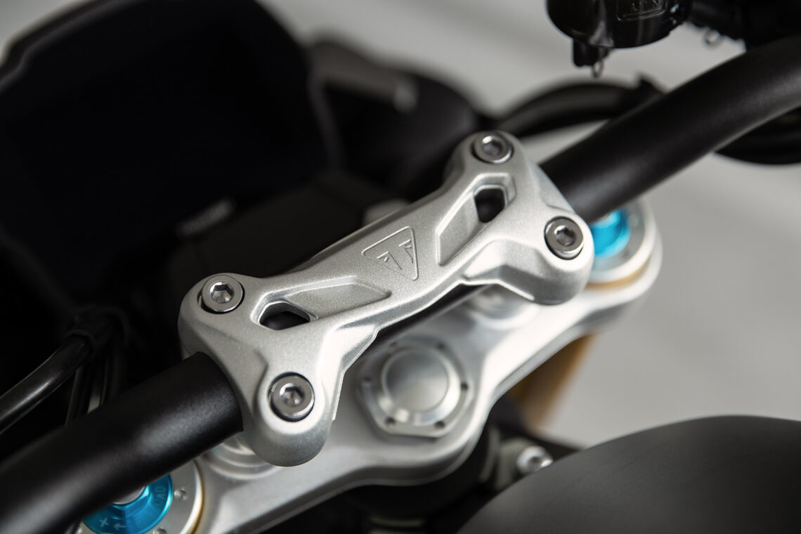 El motivo por el que Triumph ha decidido mantenerse con unas suspensiones manuales es debido a la demanda del usuario purista, que prefiere una regulación manual a la gestión semi-activa de las suspensiones electrónicas. De este modo logran mantener los costes y ofrecer una moto igual de competitiva por un precio claramente inferior. Además de ello, logran ser la única hypernaked del mercado con suspensiones "Öhlins pata negra" manuales, lo que le confiere un punto de exclusividad.