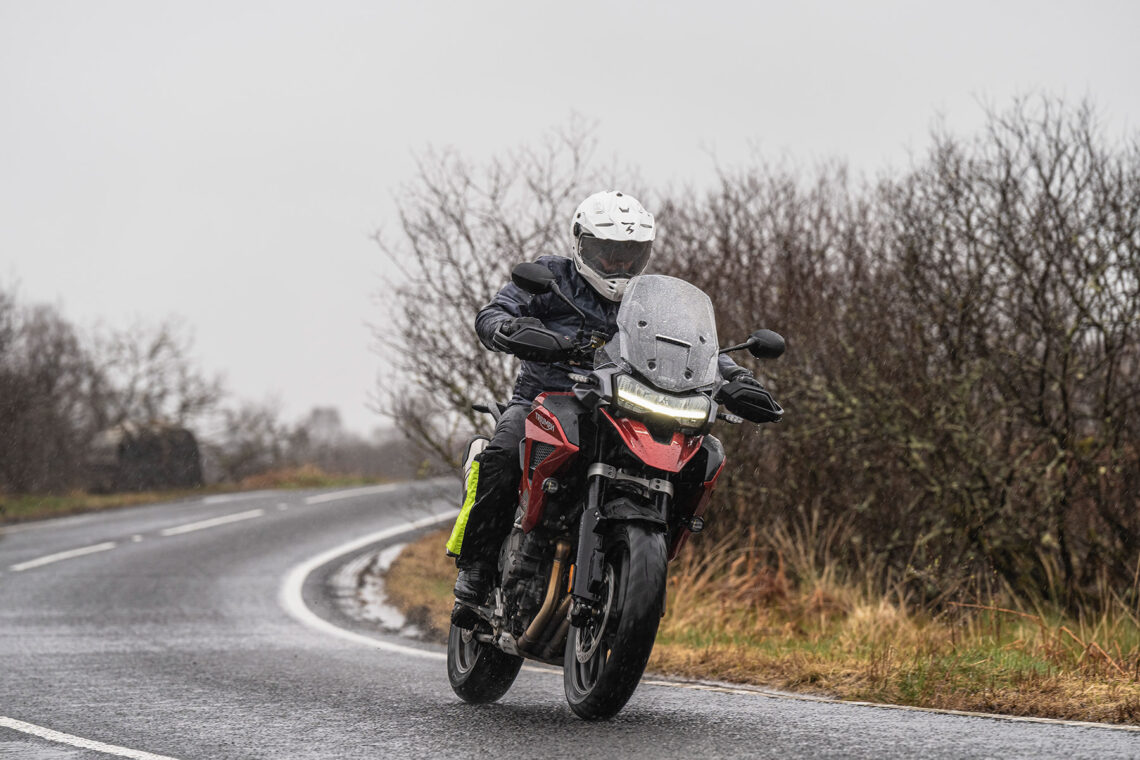 En marcha con la GT Pro puedes jugar con los 5 modos de conducción (Rain, Road, Sport, Rider -personalizable- y Off-Road) que modifican automáticamente la respuesta del acelerador (más o menos directa), el nivel de ABS/control de tracción (más o menos intrusivo) y el tarado de la suspensión (entre 2 y 8, de 9 posibles). El modo Rider permite una configuración completa a tu gusto seleccionando el funcionamiento de cada parámetro, y si no lo tocas, el setting predeterminado será Road. Otra alternativa es realizar una configuración parcial dentro de cada modo si no estás a gusto con algún parámetro: personalización ilimitada a la carta.