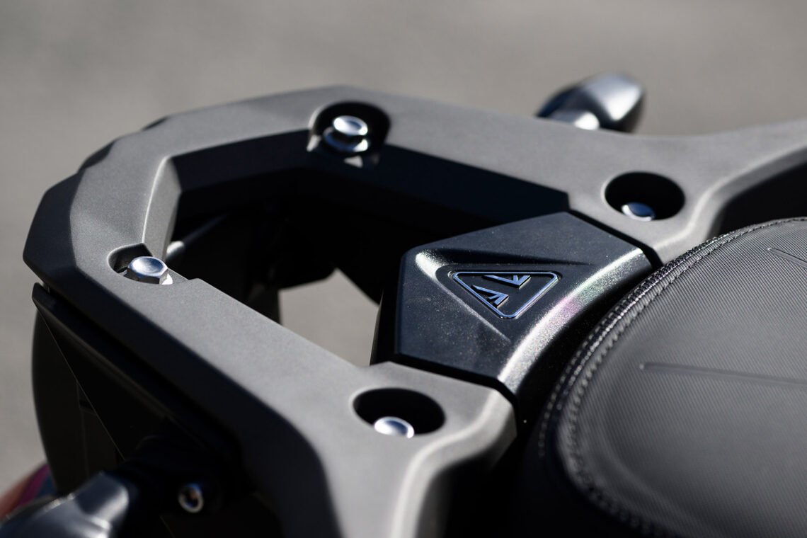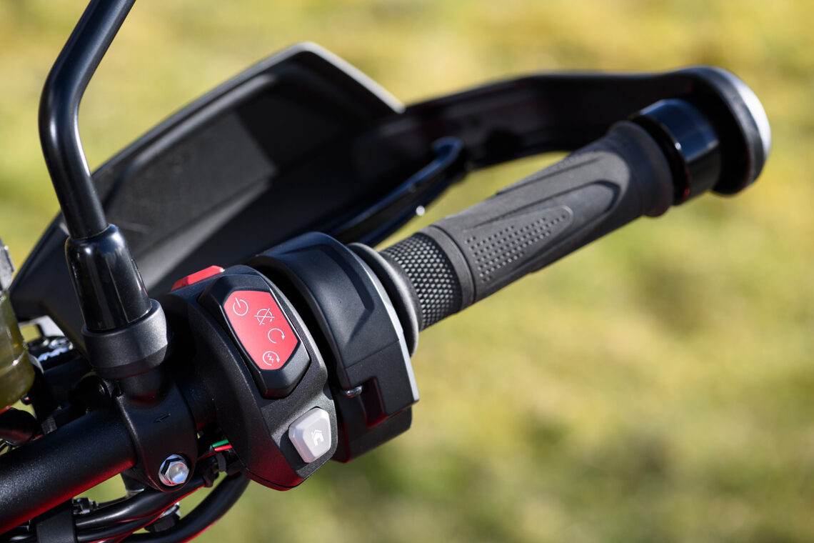 IMU 6, cinco modos de conducción, ABS/control de tracción en curva (desc., Continental), cambio semiautomático bidireccional, llave de proximidad unificada (también para tapón de gasolina), instrumentación TFT 7" a color con conectividad Bluetooth (llamadas, mensajes, música, navegación, GoPro…), control de velocidad, toma de corriente USB (bajo el asiento), parabrisas regulable en altura (manualmente), portamatrícula flotante, caballete central, cubremanetas, puños calefactables, piñas retroiluminadas, iluminación full-LED (con óptica DRL, luces cuneteras LED y faros antiniebla), cubrecárter corto y control de bloqueo en pendiente completan el conjunto.