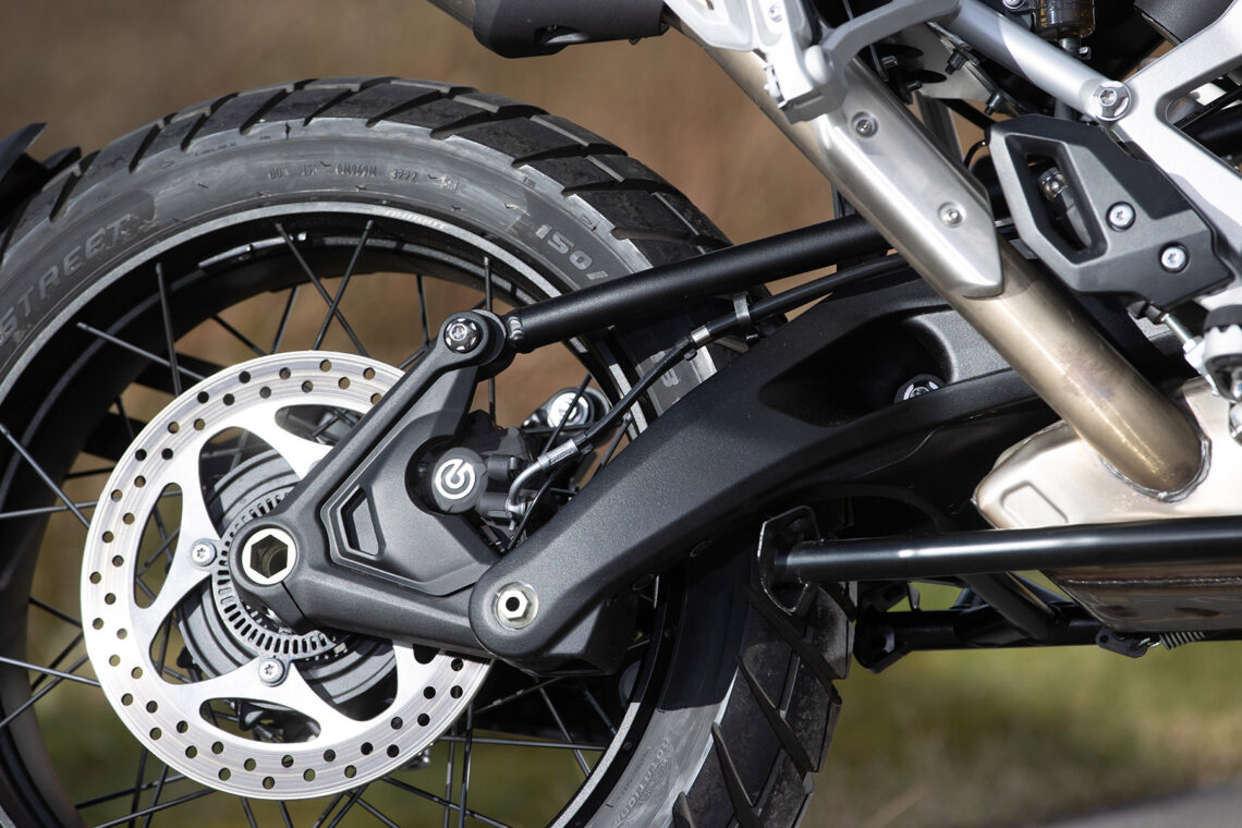 El sistema de reglaje activo del amortiguador (una tecnología que también posee BMW y Harley) es todo un acierto, sobre todo en las versiones Rally. Reducir la distancia asiento-suelo, además de poder colocar el asiento en su posición más baja, permite reducir la altura a 85.5 cm, casi la misma que las GT. Con una pulsación continua en el botón de la casita de la piña derecha en parado, el sistema se activa, volviendo a pulsarlo para que empiece a funcionar (el amortiguador del ángulo inferior derecho del display parpadeará). Una vez en marcha y pasados los 50 km/h, la suspensión volverá a su altura estándar.