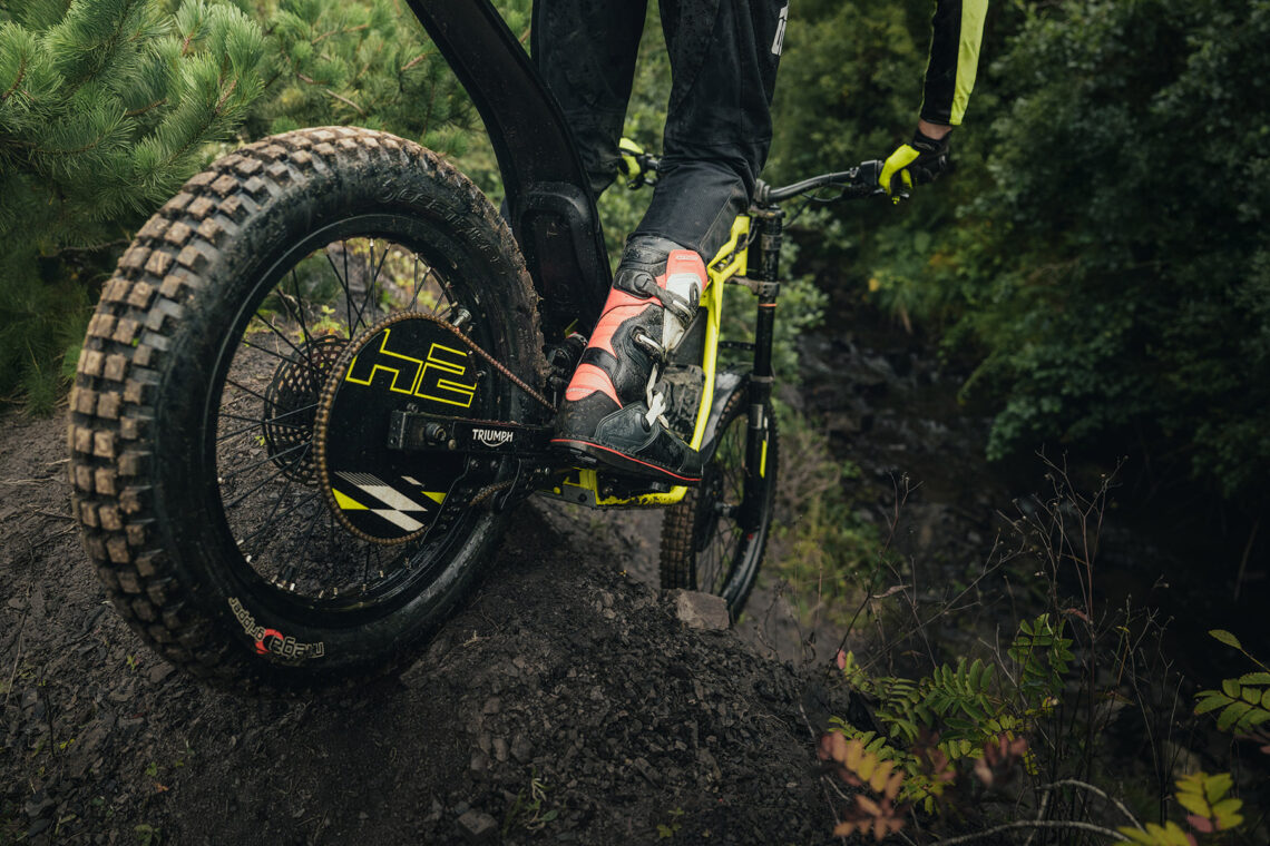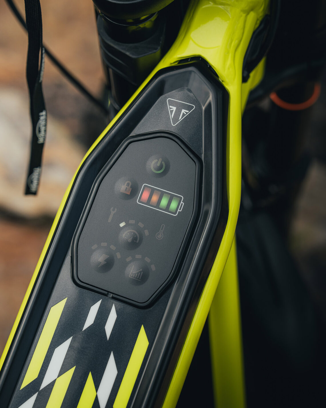 El motor sin escobillas es de 600W y 43V optimizado por Triumph y una batería sellada de alta capacidad que promete hasta tres horas de conducción suave o sesiones más cortas e intensas a plena potencia en modo trial. Un panel integrado de LED muestra el estado de carga de la batería en tiempo real. Por otro lado, la carga es sencilla, ya que se puede extraer la batería sin necesidad de herramientas y usar el conector de cierre giratorio y el asa de transporte integrada.