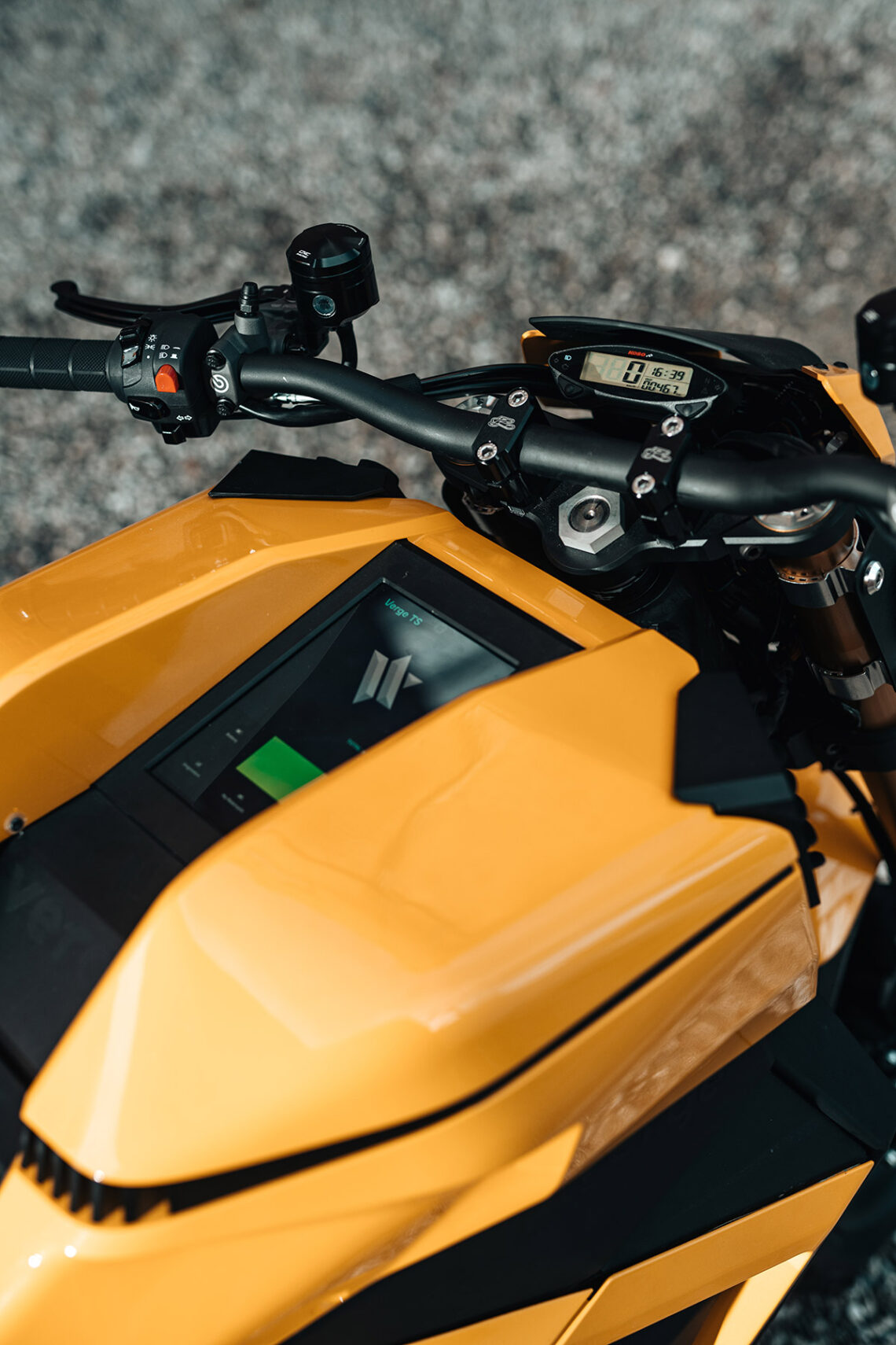 Se puede decir que es una moto eléctrica que promete con cifras atractivas: 80 kW (107 cv) de potencia con aceleraciones de 0 a 100 km/h por debajo de los 4 segundos y velocidades punta de 180 km/h. No en vano, atentos al par motor: nada menos que 1000 Nm, una auténtica bestialidad. Y, a pesar de todo este rendimiento, nos asegura unas autonomías muy razonables y que recuerdan a las motos de combustión, con 200 km en uso en autovía y 300 km en ciudad.