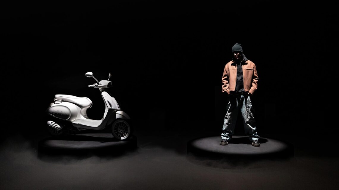 Además del scooter, la colaboración incluye una colección de accesorios donde encontramos una bolsa, un par de guantes y un casco totalmente blanco.