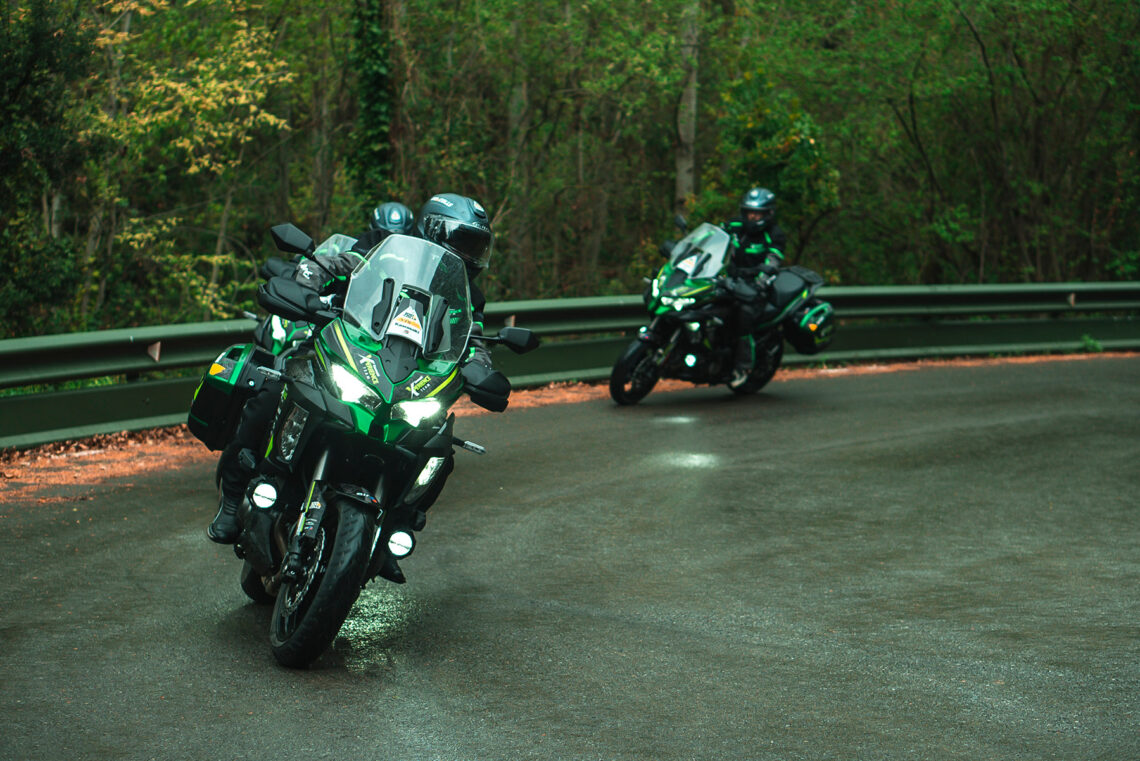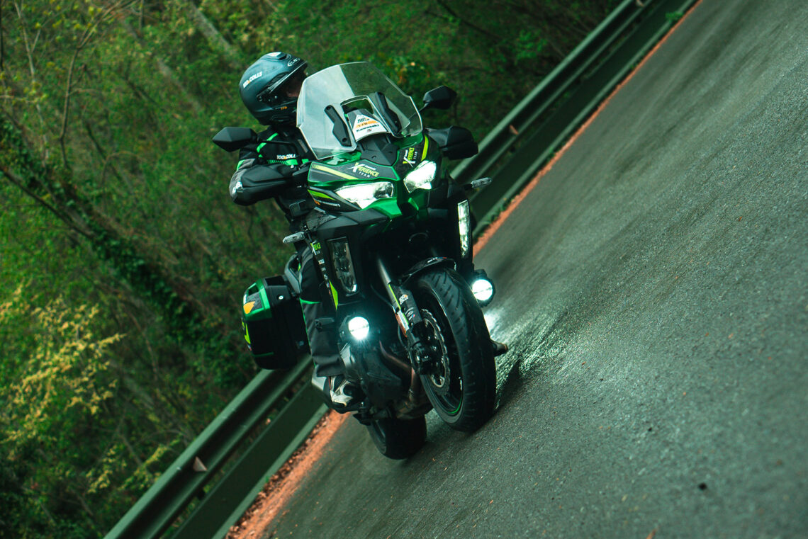 Un reto que se pudo realizar, en gran medida, gracias a las Kawasaki Versys 1000 SE. Las trail-turismo más equipadas de la marca japonesa, con el paquete Tourer Plus, no dieron el más mínimo problema durante todo el fin de semana, incluso ante las fuertes lluvias mientras se finalizaba el segundo día por los Pirineos.