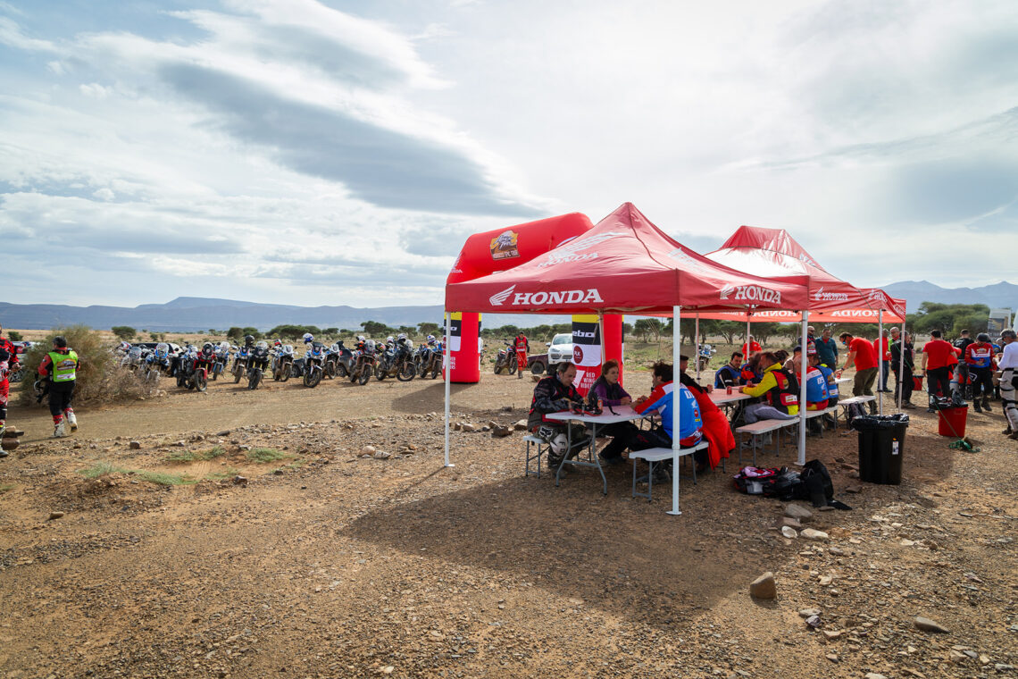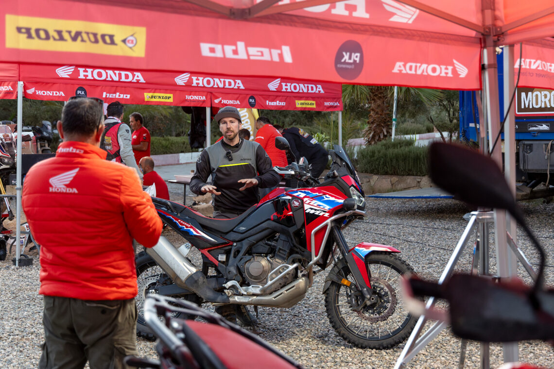 Como te adelantaba, no es casualidad que el evento lleve el nombre de Africa Twin, pues se trata de una cita exclusiva para disfrutar sobre esta montura, eso sí, en cualquier versión moderna –sí, incluso las de 19 pulgadas–. En mi caso pude contar con una unidad 2024 con cambio manual, prácticamente a estrenar, con las modificaciones justas para garantizar su desempeño en un terreno tan exigente. Por supuesto contaba con estriberas tipo rally, defensas de motor, cubremanetas y neumáticos Dunlop D908. Como extra, una cúpula baja y un GPS Garmin para cargar los tracks. Sin duda, una oportunidad perfecta para probar muy, pero muy a fondo, la nueva Africa Twin.