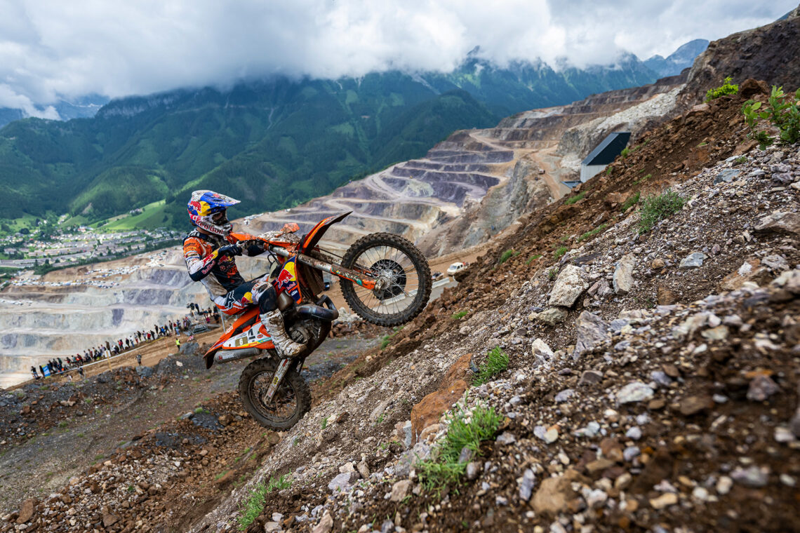 El Erzbergrodeo hizo honor a su historia y sólo 17 pilotos lograron acabar la carrera en las cuatro horas de tiempo límite. Aun así, es una mejora sustancial respecto a 2022, ya que en la edición del año pasado sólo fueron ocho los pilotos que pudieron acabarlo.