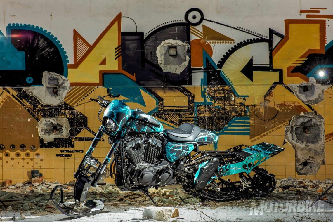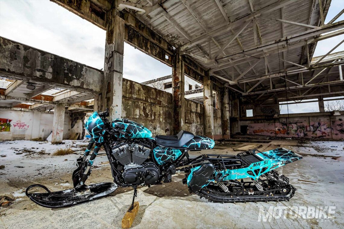 Un concesionario oficial de Eslovaquia ha modificado una Harley-Davidson Sportster Roadster en una auténtica moto de nieve. Por lo visto en el vídeo, ¡no se mueve nada mal!