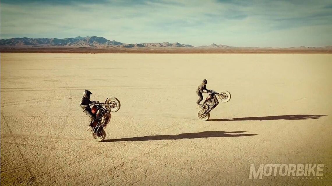 Espectacular vídeo con acrobacias y maniobras imposibles en medio del desierto con dos custom americanas. Rob Carpenter y Tony Carbajal son los que 'doman' a una Harley-Davidson Sportster y una Indian Scout. No te lo pierdas.