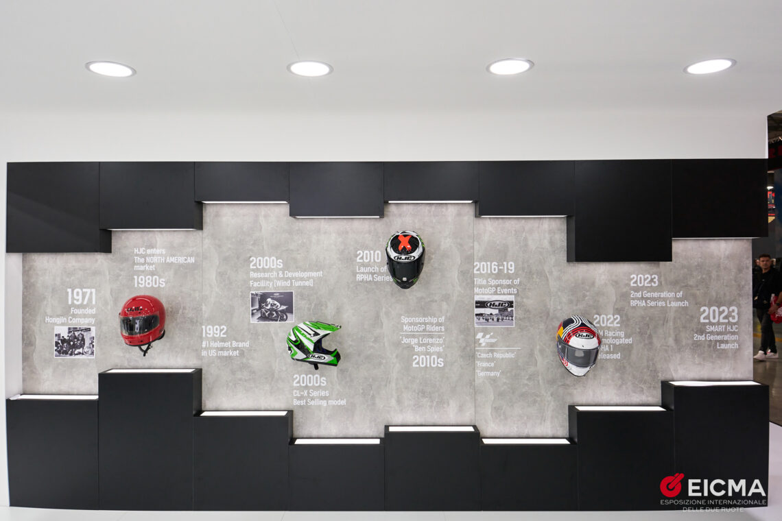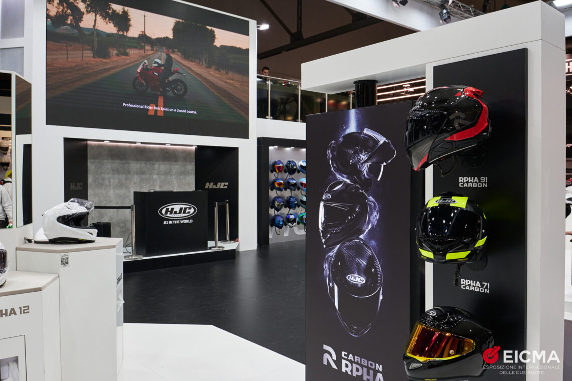 Como no podía faltar en cada edición del EICMA, HJC lució sus siempre llamativas gráficas en buena parte de su gama. Pudimos ver diseños espectaculares de diferentes franquicias cinematográficas o videojuegos: Joker, Diablo, Furia diurna, Pac-Man... Nunca pasan desapercibidas, llamando la atención de los más jóvenes y también de los más nostálgicos.