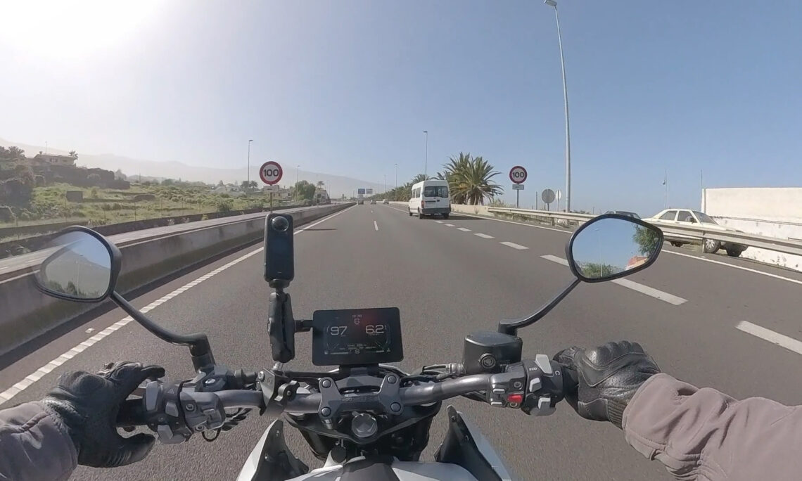 En marcha, probamos lo capaz que es la X3, los ángulos que consigue y las posibilidades que hay sobre una moto, como su modo estabilización que tanto recuerda a las Onboard de competición. Al modo Loop también se suman el Timelapse, Timeshift y el de vídeo estándar.