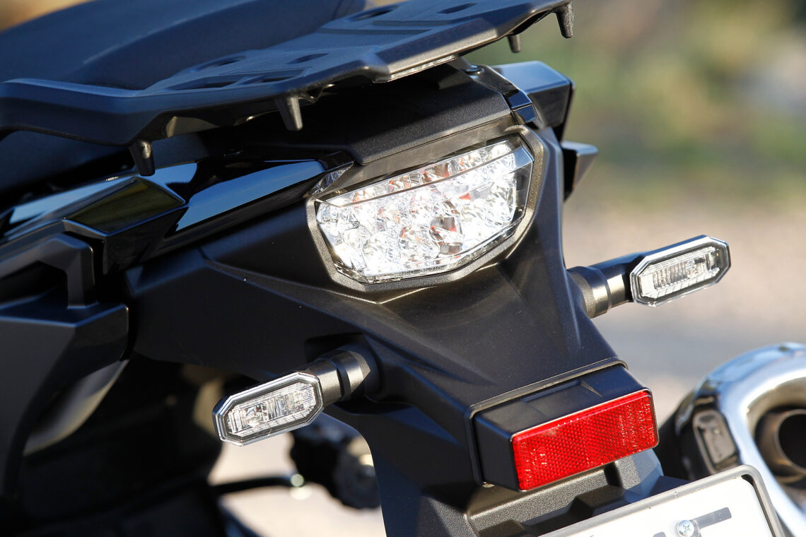 Si profundizamos un poco más encontramos una suspensión Showa con 7 cm menos de recorrido y reglajes básicos (tanto horquilla como amortiguador), menos distancia asiento-suelo, diferentes geometrías, menor distancia entre ejes (1.515 mm) y 3.5 cm menos de altura libre al suelo (185 mm), manillar de aluminio más entrecho/adelantado, control de tracción con 2 niveles menos de intervención, ABS no desconectable y 7 kg menos de peso total.