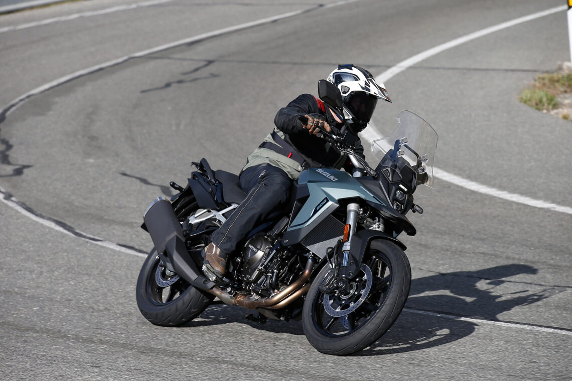 La electrónica incluye tres modos de conducción (A, B, C), acelerador electrónico, control de tracción (3 niveles, desc.), ABS (2 niveles) y tecnologías propias de Suzuki (SESS -arranque rápido- y LRA -asistente a bajas revoluciones-). Instrumentación LCD a color de 5" (con sensibilidad lumínica), iluminación full-LED, cambio semiautomático bidireccional (desc.), toma de corriente USB (5V2A), maneta de freno regulable y parrilla trasera portabultos completan su equipamiento de serie.