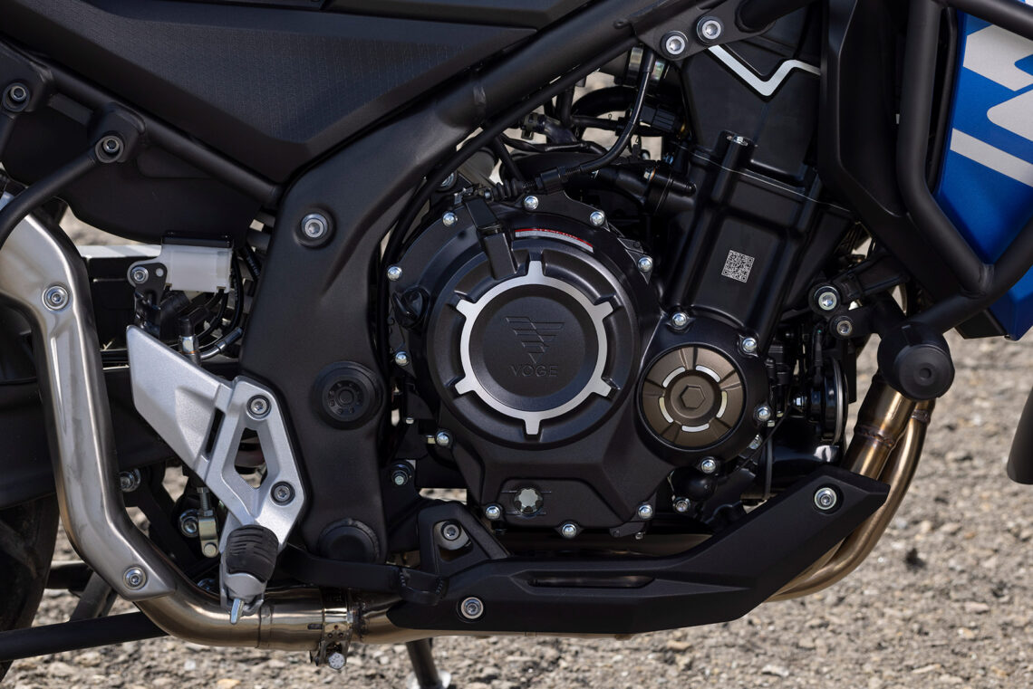Dentro del catálogo de la china VOGE, la 525DSX se posiciona por debajo de la 650DSX y complementa a su hermana asfáltica, la VOGE 500DS. Emplea un bicilíndrico en paralelo DOHC 8 válvulas refrigerado por agua con 494 cc, 47.6 CV a 8.500 rpm, 44.5 Nm a 7.000 rpm, embrague antirrebote e inyección electrónica Bosch. Deriva del anterior 471, manteniendo la cifra de potencia, pero aumentando 23 cc (motor "cuadrado" con 68 mm de diámetro y carrera) y ganando 4 Nm de par motor (44,5 a 7.000 rpm). La electrónica presente en esta VOGE incluye doble modo de conducción (Estándar y Sport), ABS de doble canal (desc. ambas ruedas) y control de tracción (desc.).